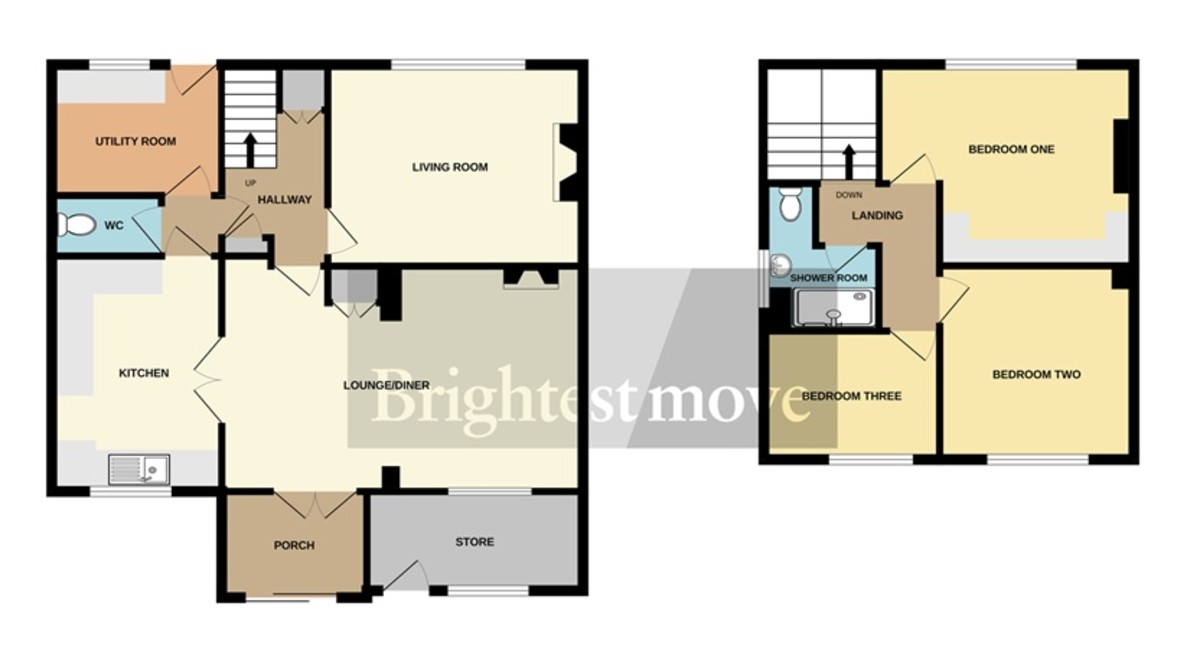 The spacious accommodation comprises two reception rooms, a kitchen, utility room, cloakroom, and a practical porch on the ground floor. Upstairs features three generously sized bedrooms and a shower room, making it ideal for family living.