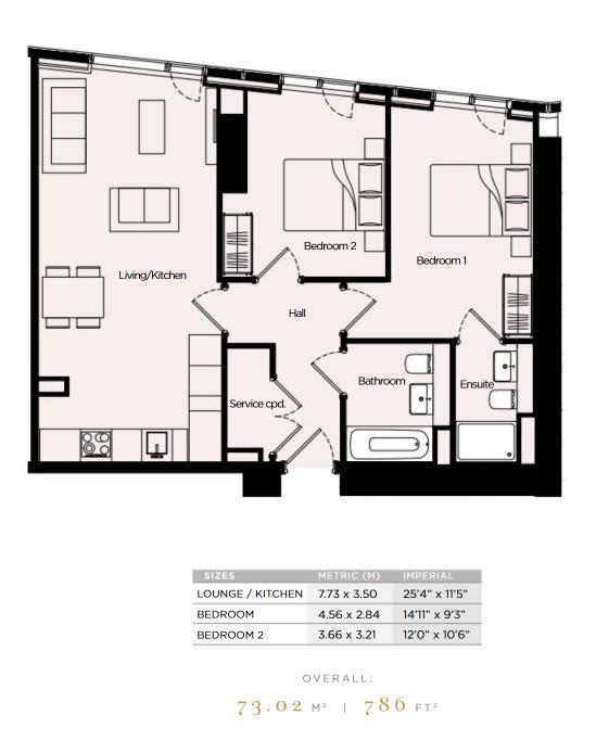 Positioned within the iconic Deansgate Square Towers, the apartment exemplifies contemporary city living at its finest. Designed with luxury and lifestyle in mind, the accommodation comprises a spacious open-plan living and dining area, sleek integrated kitchen, and two generously proportioned bedrooms, including a principal suite with en-suite shower room. Floor-to-ceiling glazing floods the space with natural light, showcasing far-reaching city views and accentuating the apartment's refined finish.