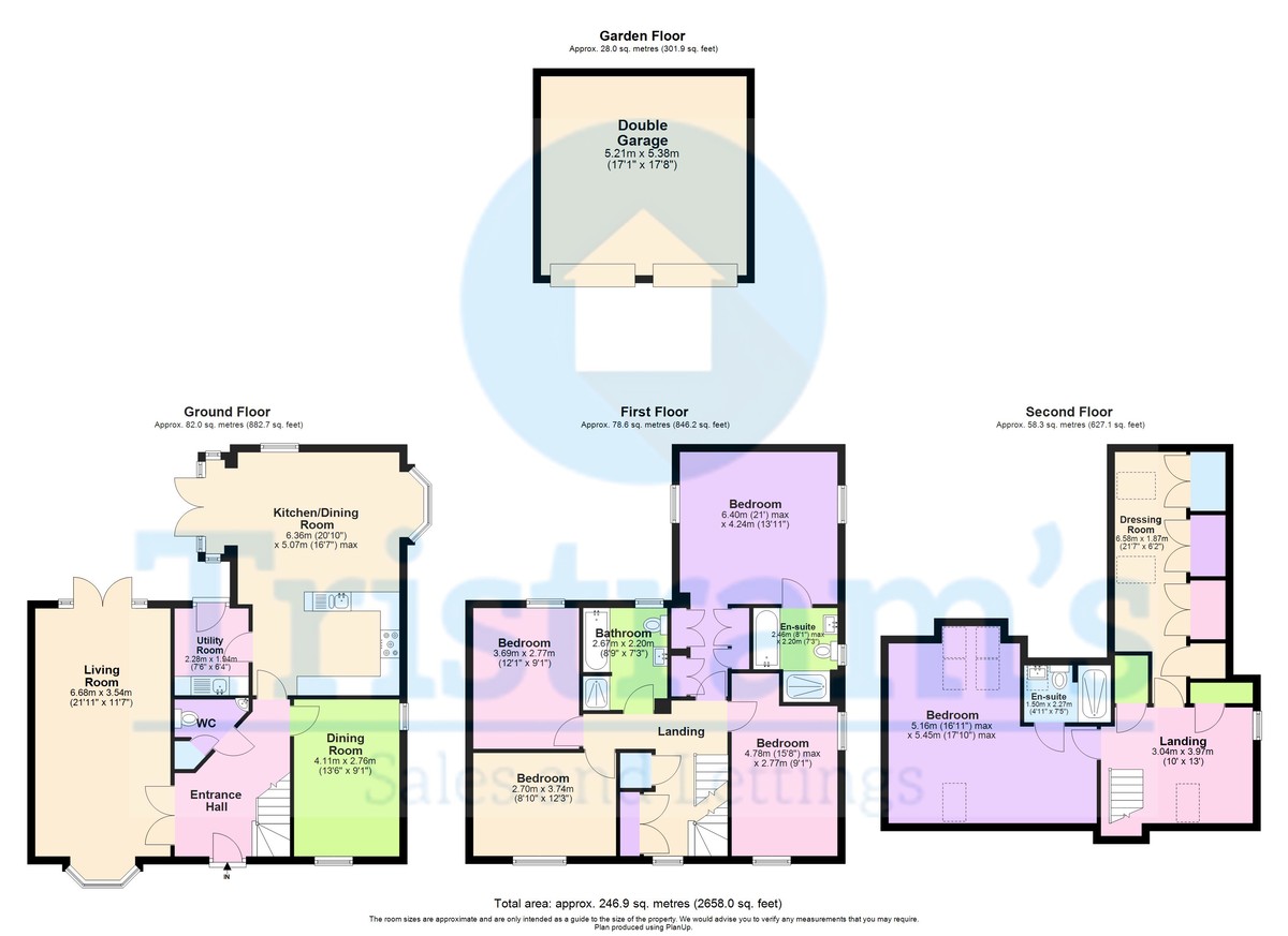 Details - PROPERTY SUMMARY Originally completed by David Wilson Homes to their popular Moorcroft design, this impressive detached family home offers around 246.9 sq. metres (2658 sq. feet) of versatile accommodation across three floors, complemented by a detached double garage of 28.0 sq. metres (301.9 sq. feet) set externally from the property. Thoughtfully designed with space and light in mind, it provides five double bedrooms, four bathrooms and a layout that perfectly balances formal and informal living.