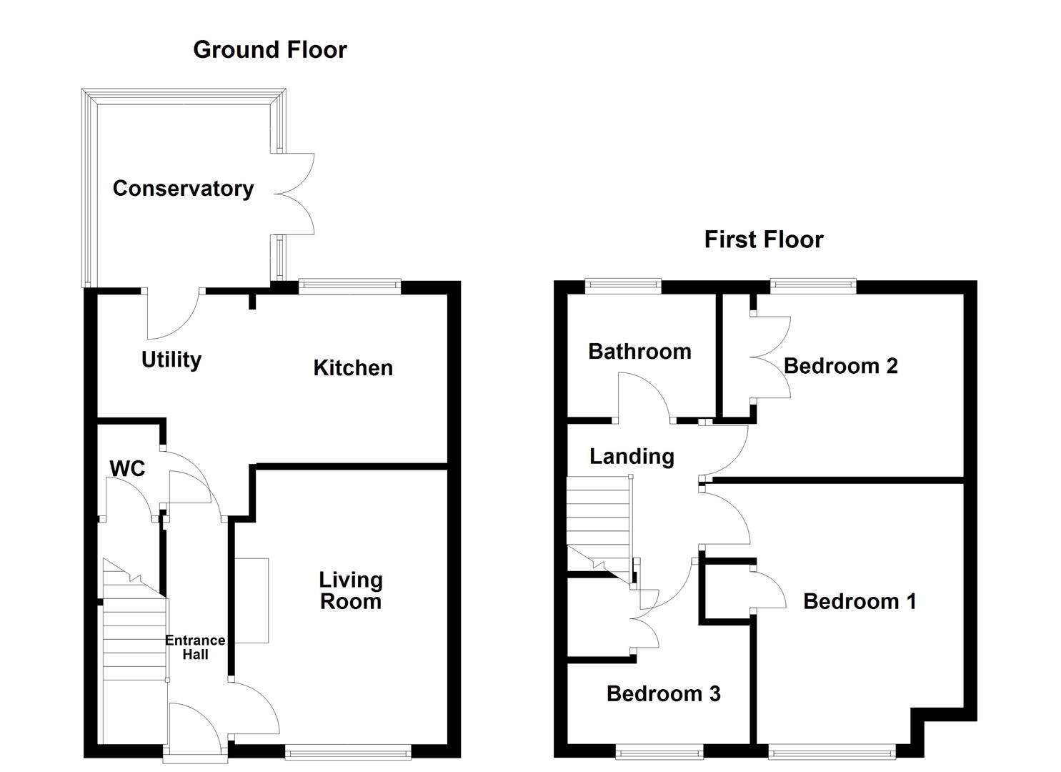 The property briefly comprises an entrance hall leading to the living room and utility area. The generously sized living room provides the perfect space for family relaxation, while the utility area gives access to the conservatory. A modern kitchen also opens into the conservatory, which overlooks the rear garden. To the first floor, the landing leads to three well-proportioned bedrooms, all benefitting from built in storage, as well as a family washroom and additional W.C.. Externally, the property boasts a low maintenance front garden with a block paved driveway and double wrought iron gates, providing secure parking for two vehicles. The rear garden is mainly paved with a lawned area, making it ideal for children or pets. It further benefits from two useful outbuildings and a timber-built dog kennel, with the whole garden fully enclosed by fencing.