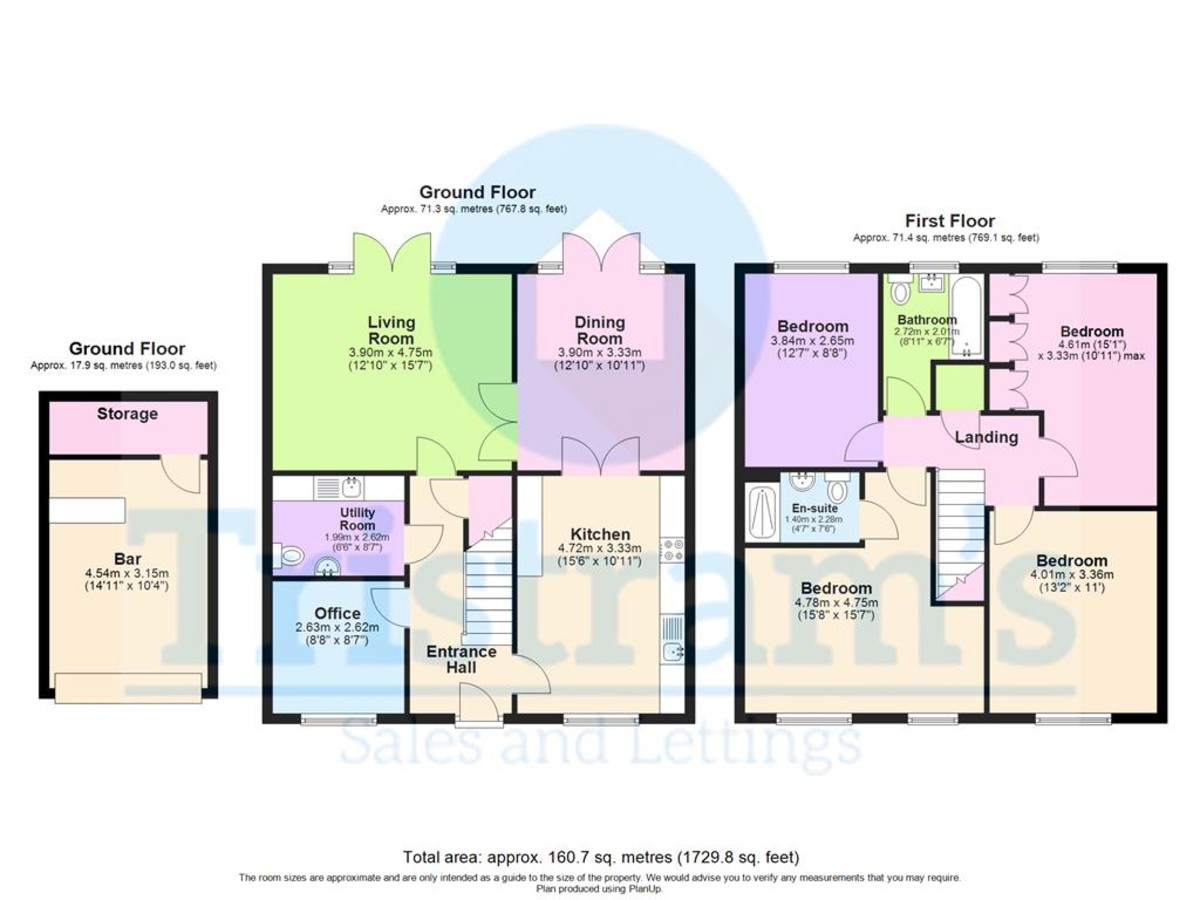 Measurements: The room sizes are approximate and are only intended as a guide to the size of the property. We would advise you to verify any measurements that you may require.