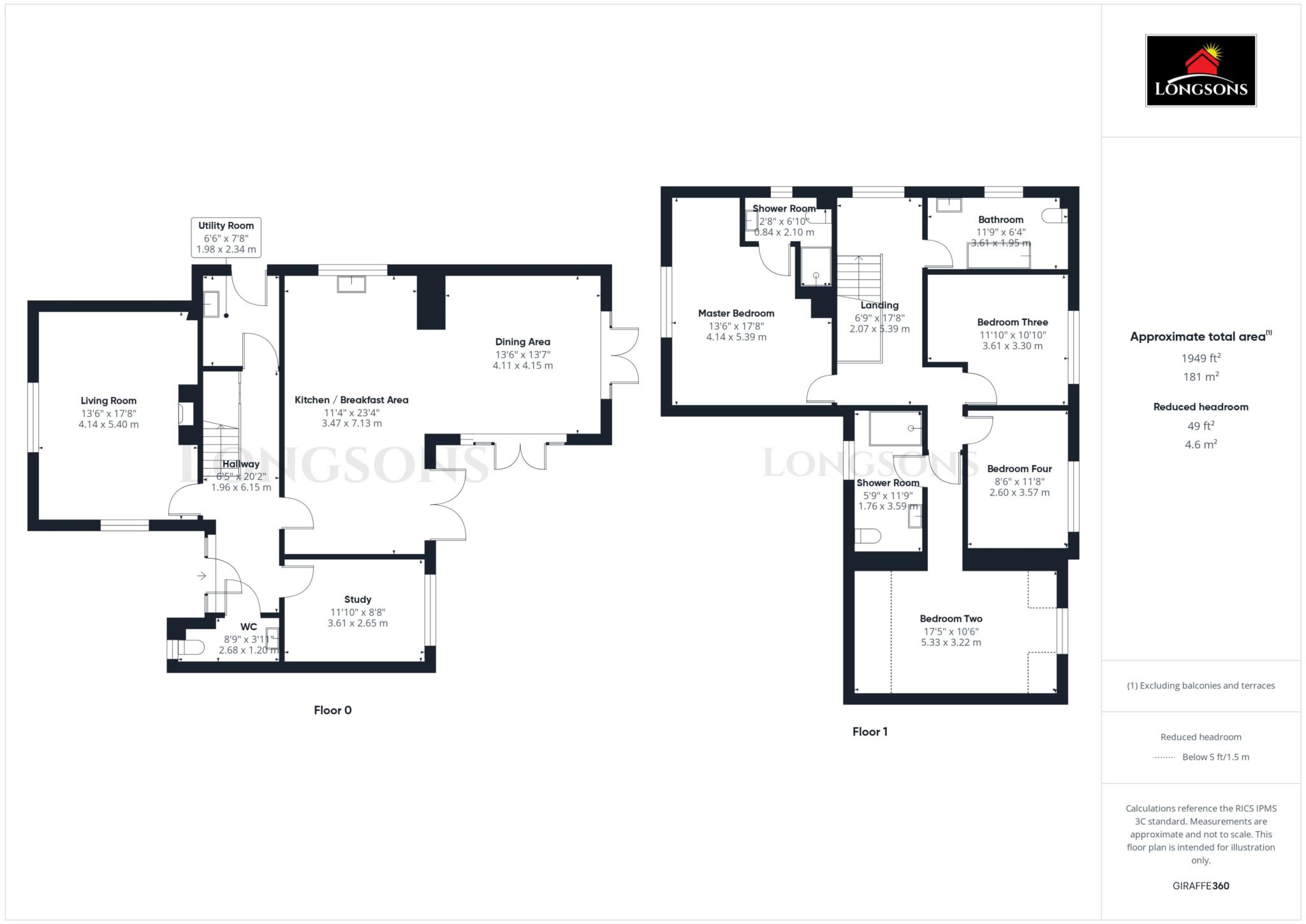 Bedroom One - 13'6" (4.11m) Max x 17'8" (5.38m) Max