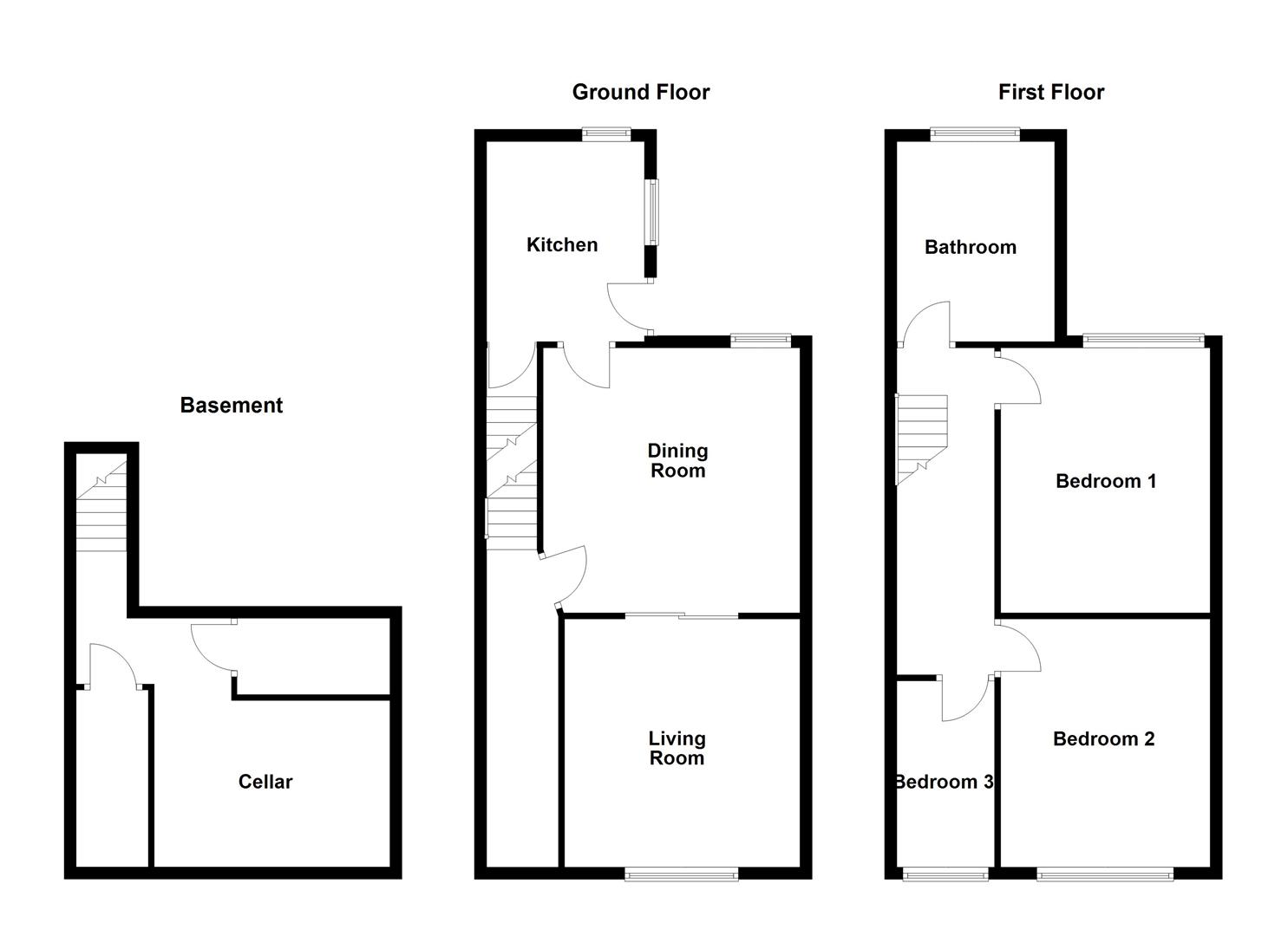 The home is approached via a welcoming entrance hall which leads into a well proportioned living room, featuring an attractive fireplace and double doors opening into the adjoining dining room. The kitchen is fitted with a broad range of wooden fronted units and includes access to the cellar, providing valuable additional storage space. To the first floor, there are two generous double bedrooms and a further single bedroom, all served by a well sized family bathroom. Externally, the property offers a buffer style garden to the front with on street permit parking available, while to the rear there is a larger, low maintenance garden with a gate leading out to the side lane.