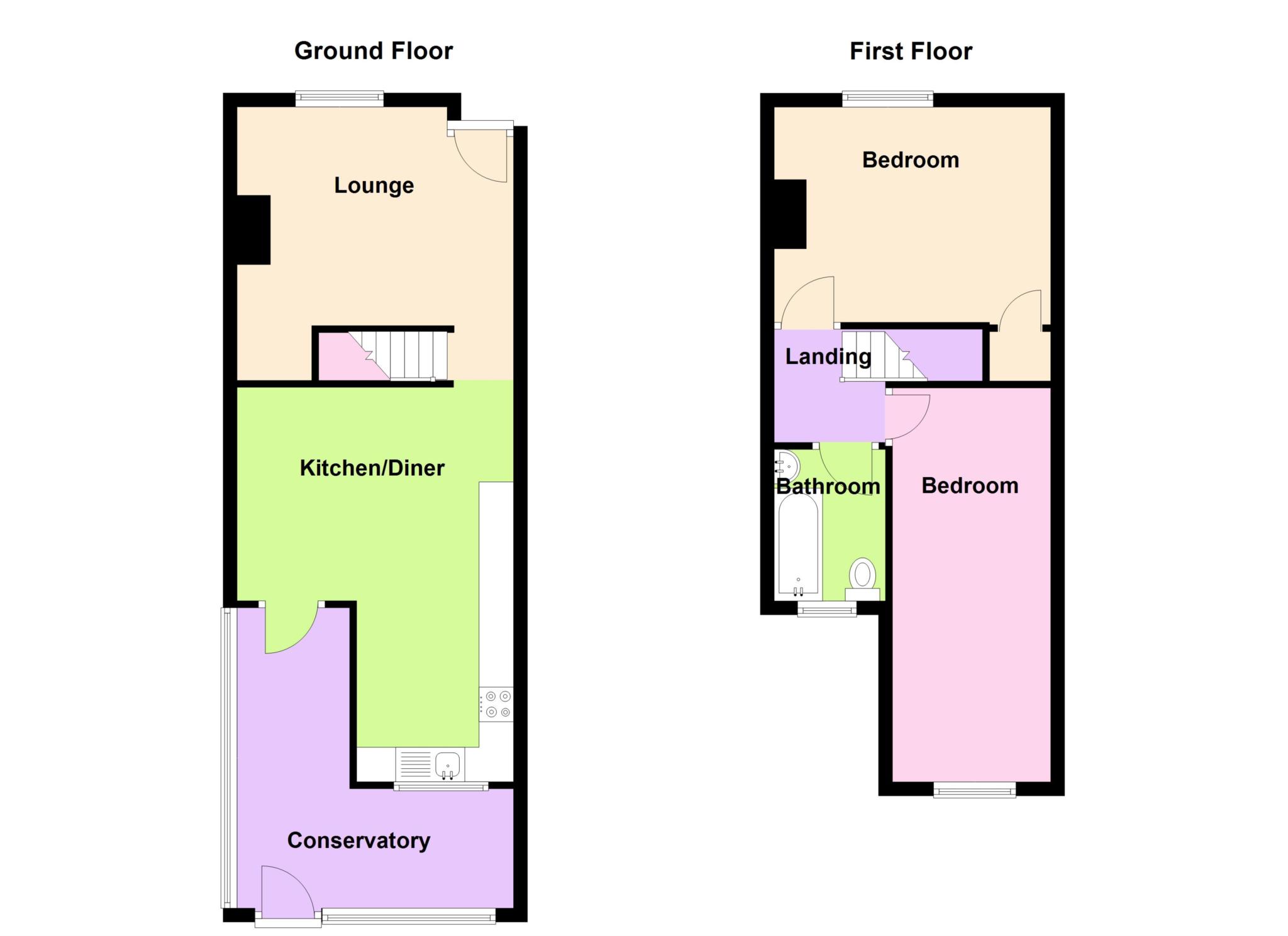 A middle terraced house with 2 good size bedrooms. The accommodation offers lounge and spacious kitchen/dining room, conservatory and first floor bathroom. PVCu double glazing and gas central heating are both installed. Ideal first time purchase.