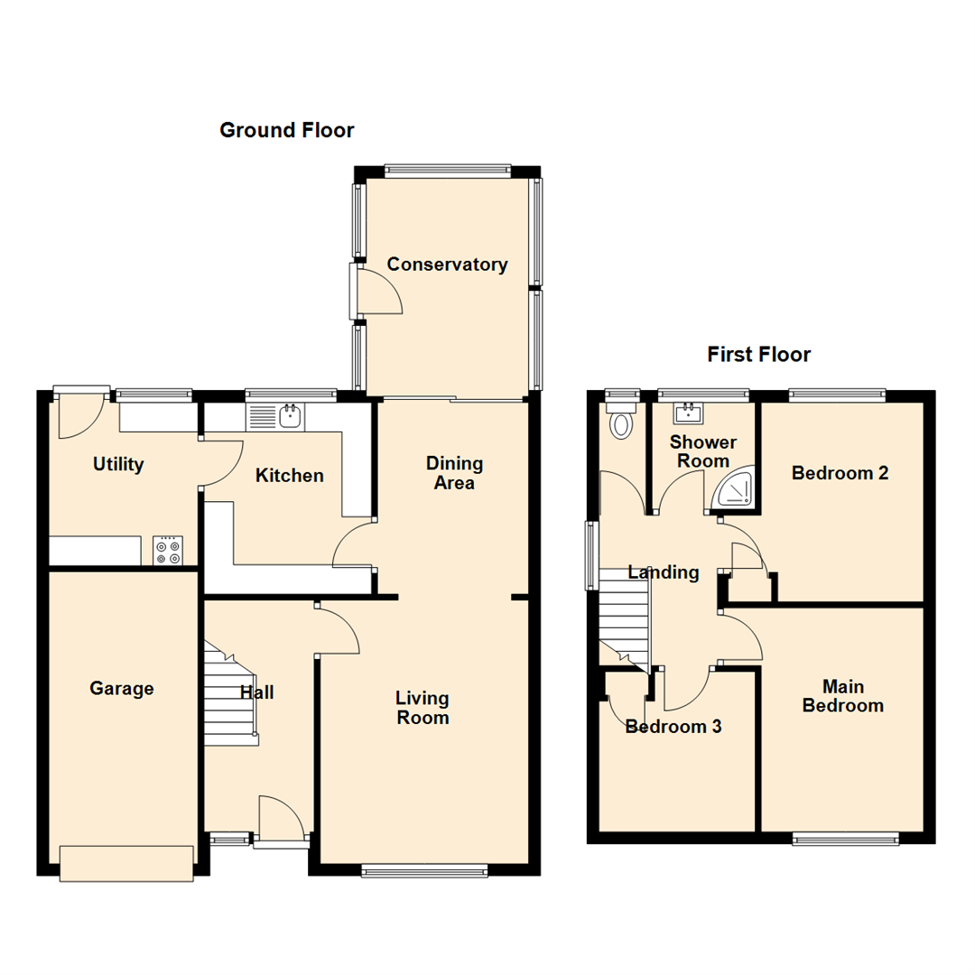 The ground floor features a welcoming hallway, a bright and comfortable living room, and a dining area with French doors leading into a lovely conservatory - a perfect space to relax or read. The fitted kitchen offers ample workspace and storage and complemented by a practical utility room for added convenience.