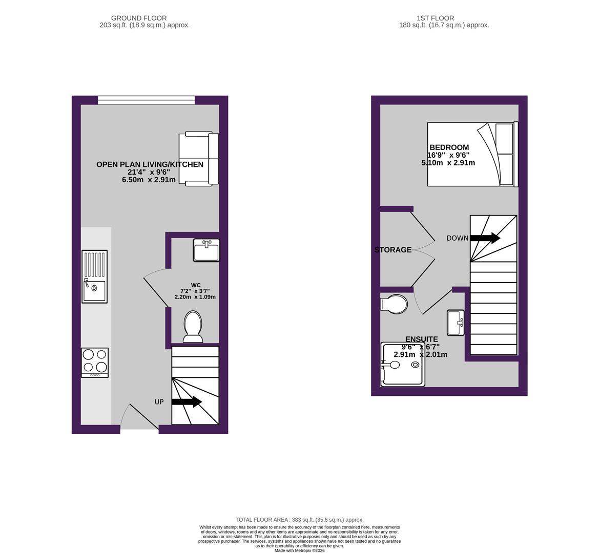 This stylish duplex offers a bright open-plan kitchen and living space and a generous double bedroom, and 1.5 bath rooms, because sharing is overrated. There's a handy downstairs WC, with an en-suite upstairs, so comfort is well and truly built in.