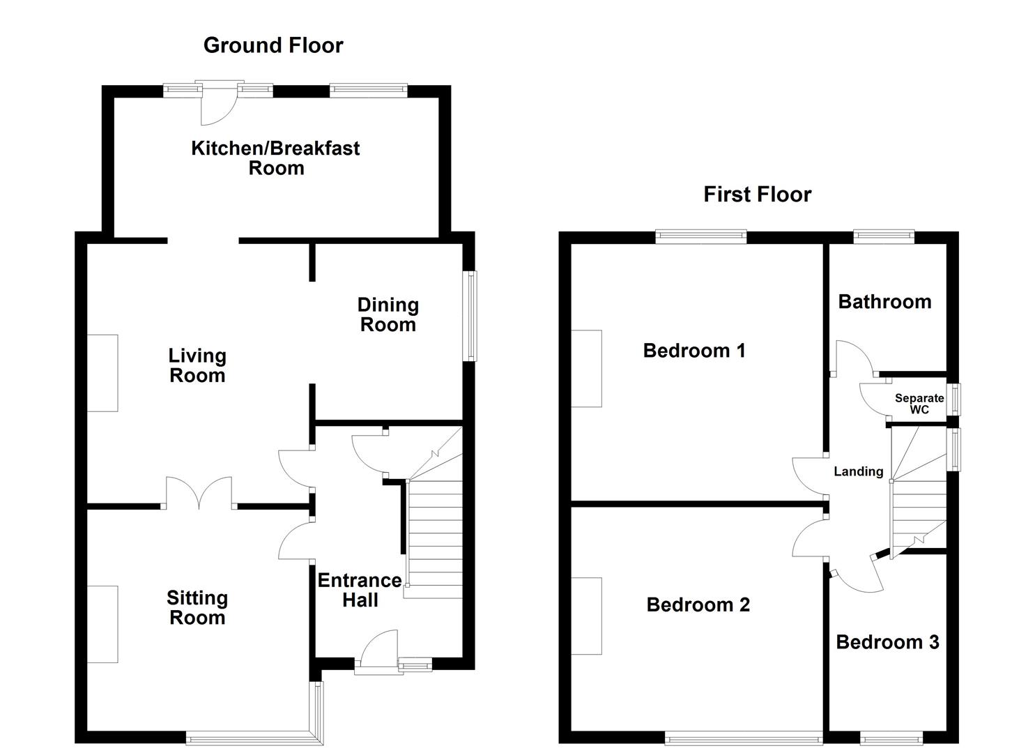 To the first floor landing there is access to the loft, as well as three bedrooms, house bathroom and separate w.c.