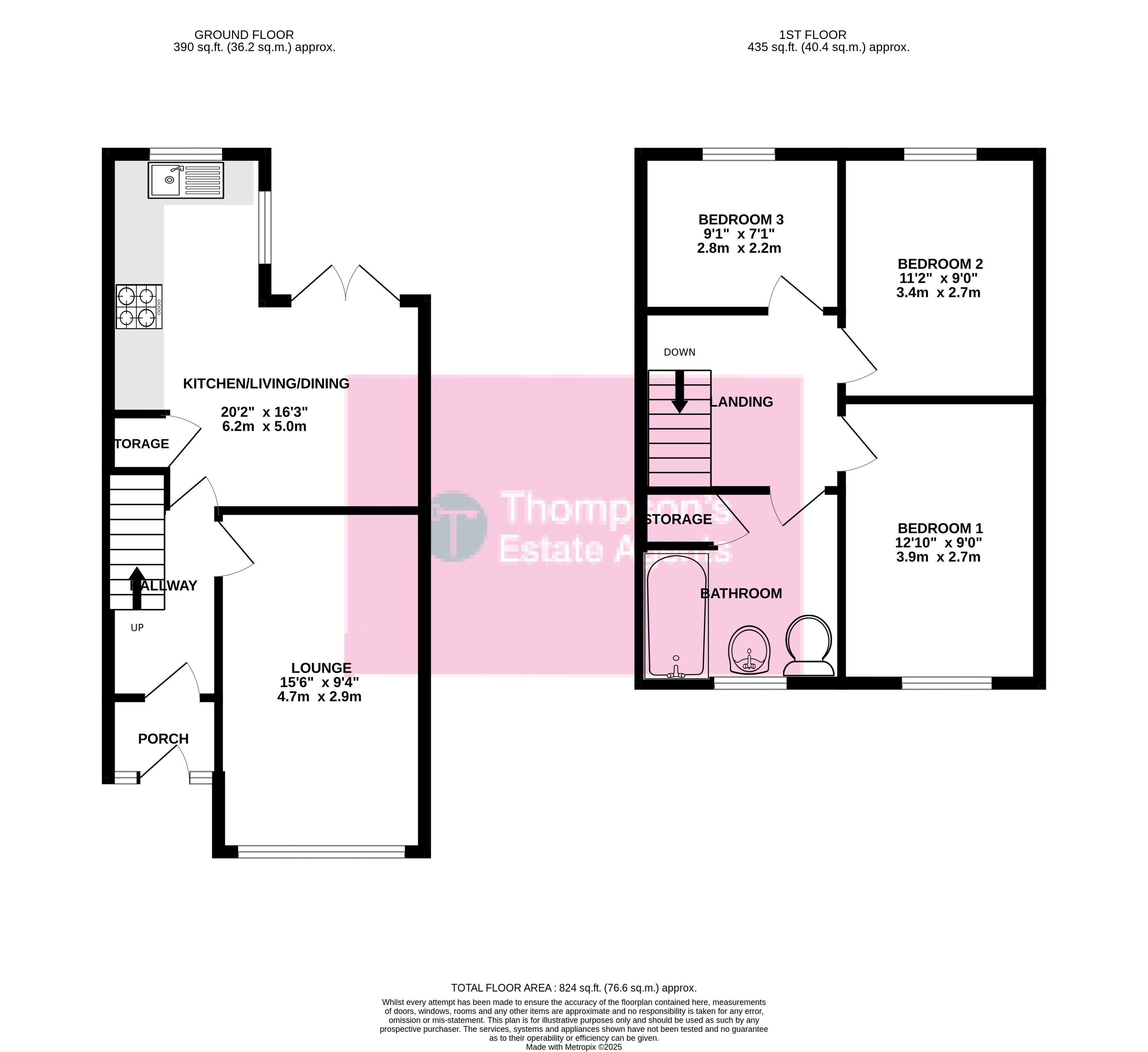 Carpeted stairs and landing, loft hatch access and plug point.Loft - spacious with boarded floor used for storage