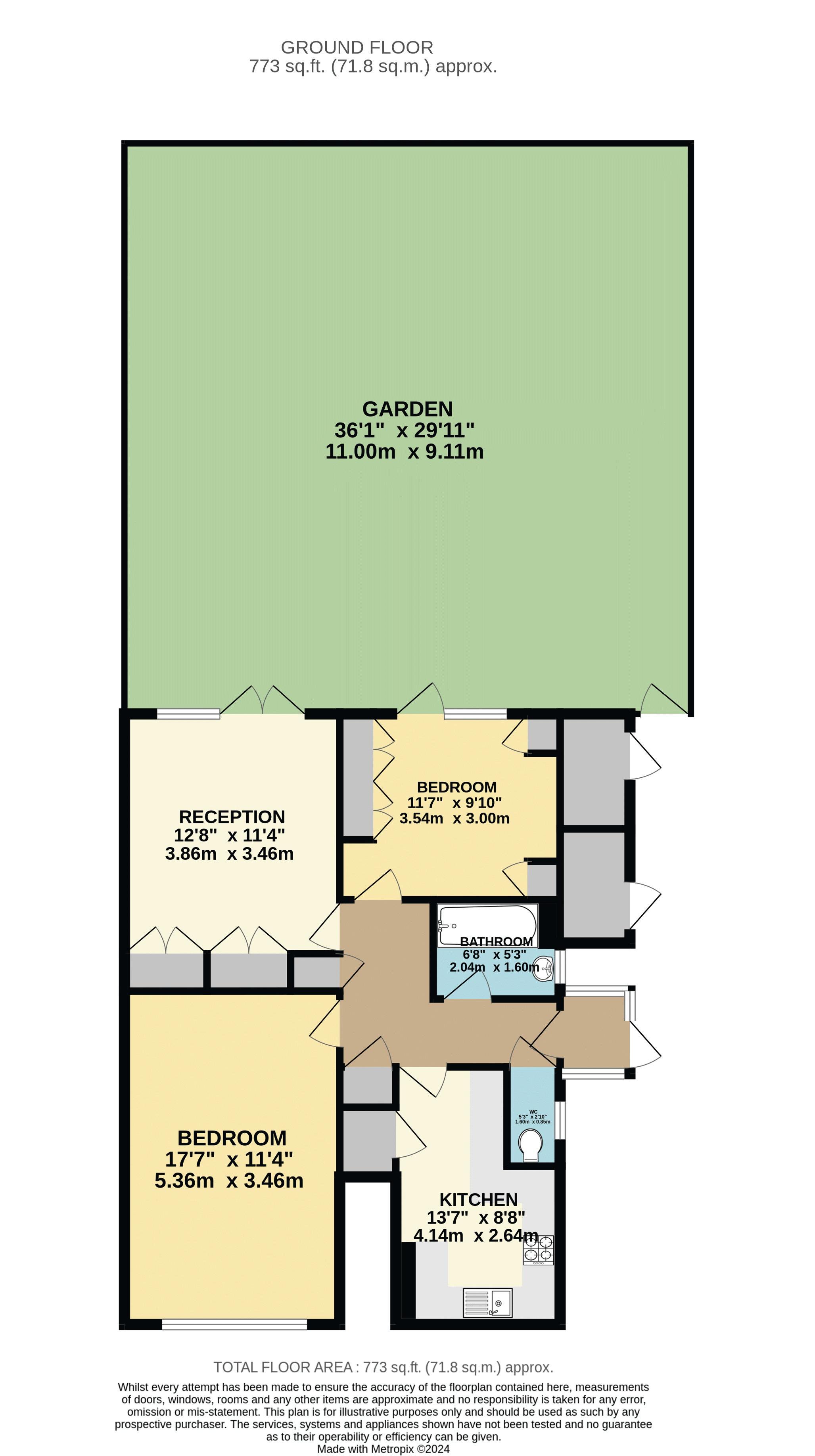 The accommodation comprises a modern fitted kitchen, large reception room, bathroom and useful storage areas.