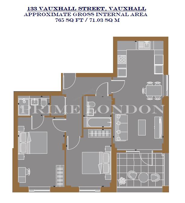 A modern two bedroom two bathroom apartment, in the stylish boutique development 133 Vauxhall Street, available on a furnished basis through Prime London.