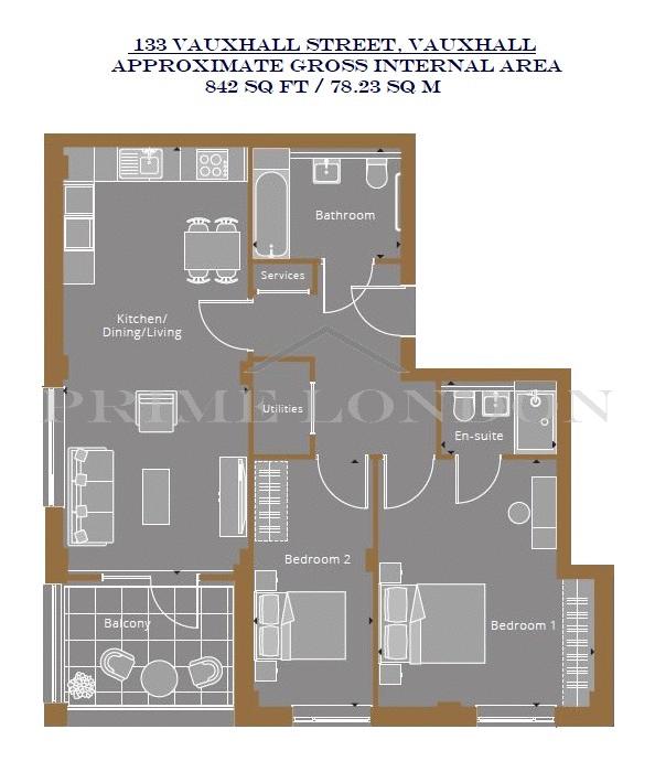 This lovely brand new modern two bedroom two bathroom apartment, in the stylish boutique development 133 Vauxhall Street can come furnished or unfurnished, and is available to rent through Prime London.