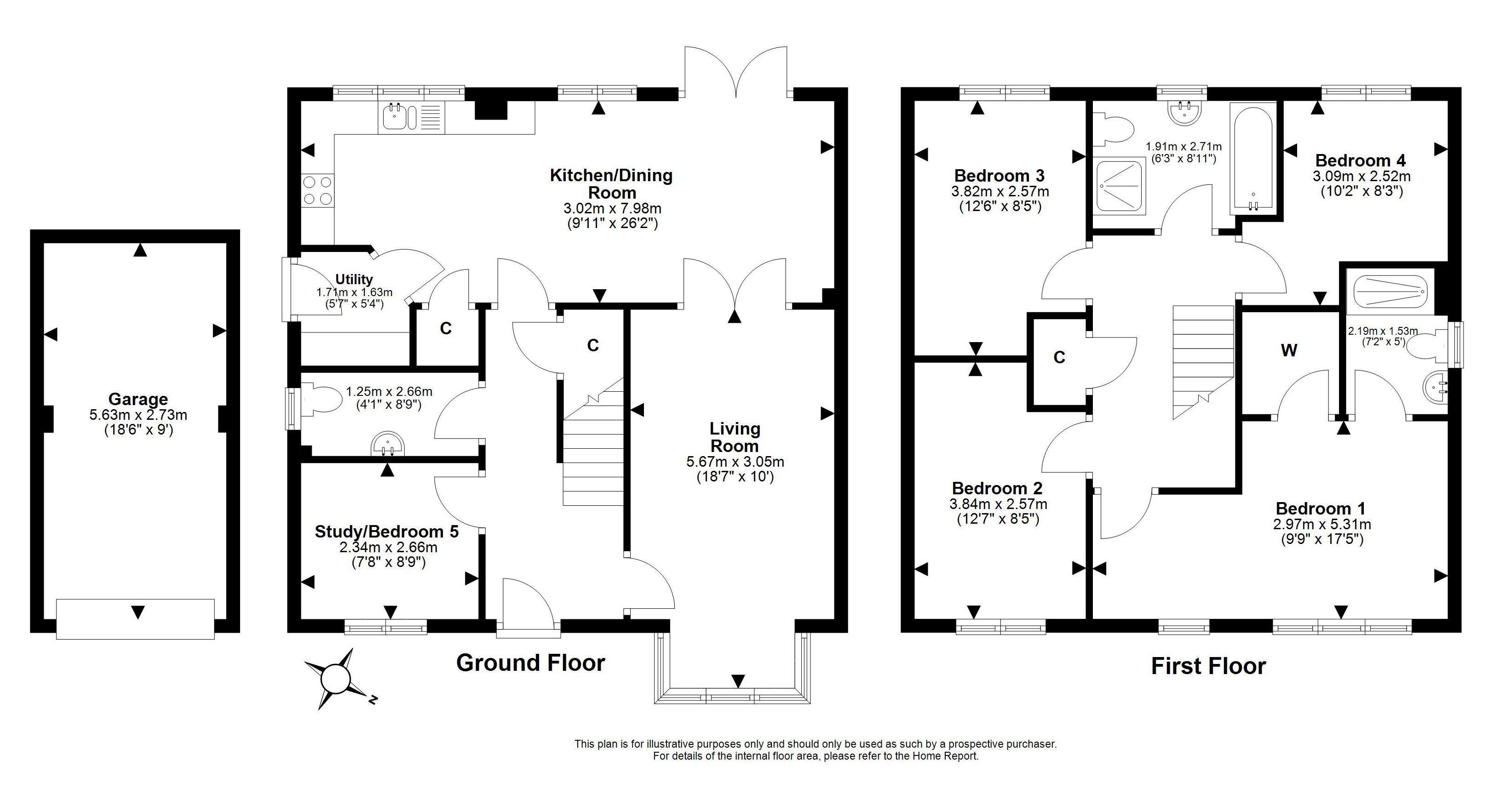 This beautifully presented five-bedroom detached home offers spacious and well-designed accommodation arranged over two levels and is presented in excellent, move-in condition.The ground floor begins with a welcoming entrance hall with useful under-stair storage. To the front of the property is a bright and comfortable lounge featuring an attractive bay window which fills the room with natural light. Double doors lead through to a stylish and spacious kitchen dining room, forming the heart of the home and offering an ideal space for both everyday living and entertaining. Patio doors provide direct access to the rear garden. The ground floor further benefits from a practical utility room with access to the side of the property, a convenient WC, and a versatile fifth bedroom which could equally serve as a home office or study. Upstairs, the property offers a generous principal bedroom complete with en-suite shower room, along with three further well-proportioned bedrooms. The family bathroom is well appointed and features a bath, separate shower cubicle, WC and wash hand basin.Externally, the property is complemented by a detached garage and driveway providing off-street parking for two vehicles. The rear garden is generously sized and mainly laid to lawn, creating a secure and safe space ideal for children and pets. To the front, the garden is attractively landscaped with lawn and shrubs. Overall, the property is presented in superb condition throughout, offering modern family living in a home that truly feels as good as new. situated within a popular and well-established residential area of Tranent, a thriving East Lothian town located just a short distance from Edinburgh. The property is ideally placed for access to a wide range of local amenities including supermarkets, independent retailers, cafés, and well-regarded primary and secondary schooling. The town offers excellent transport links, making it particularly appealing for commuters. The nearby A1 provides quick and convenient access to Edinburgh City Centre and the wider road network, while regular bus services operate throughout Tranent and the surrounding areas. Prestonpans railway station is also within easy reach, offering direct rail connections to Edinburgh and further afield. East Lothian is renowned for its beautiful coastline and countryside, with numerous outdoor leisure opportunities nearby including coastal walks, golf courses, and sandy beaches. The neighbouring town of Musselburgh also provides additional shopping, dining and leisure facilities, making this an ideal location for those seeking both convenience and access to the
