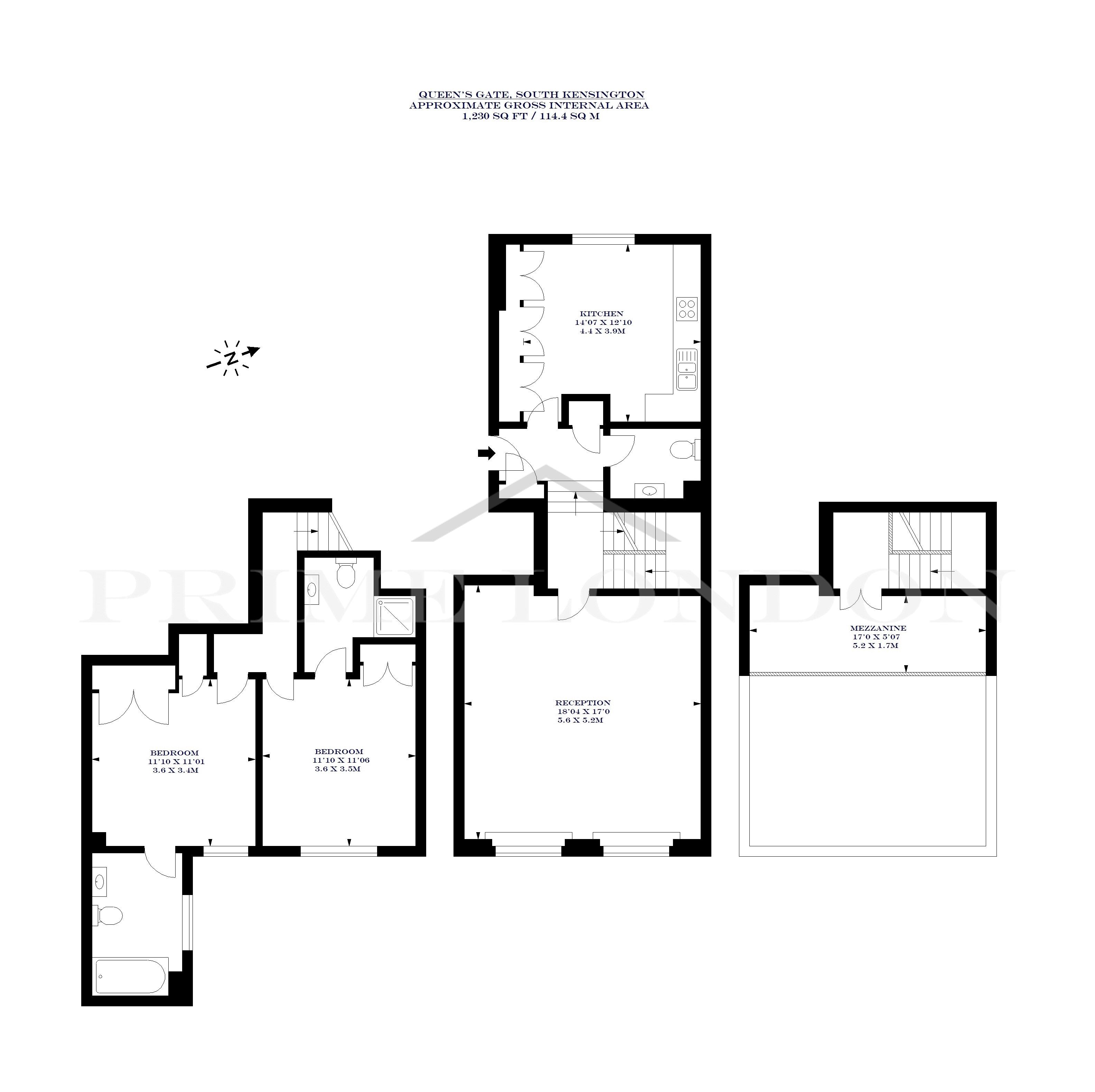 This spacious duplex two bedroom apartment of 1,230 sq ft / 114.4 sq m, set in a beautiful stucco fronted Victorian building on Queen's Gate, comes fully furnished, and is available to rent through Prime London.