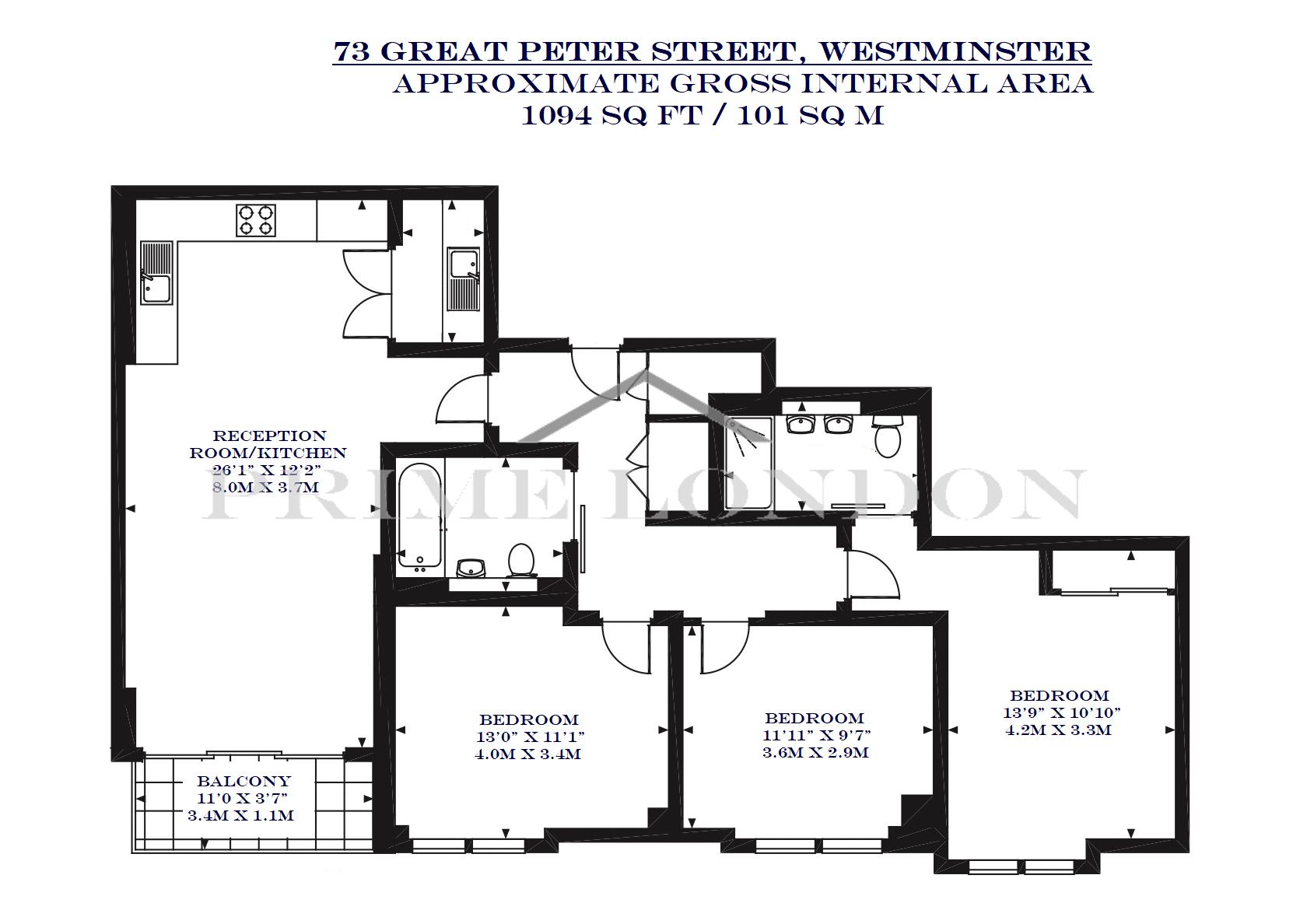 This spacious and bright three bedroom apartment, coming fully furnished (significantly updated from images) and on a higher floor in the excellent 73 Great Peter Street development, is available to rent through Prime London.