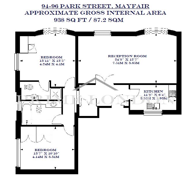 Located close to Hyde Park and sitting just off the famous Park Lane, this 938 sq ft / 87.2 sq m apartment benefits from a light and spacious reception room and separate modern kitchen, two double bedrooms, one of which features a hidden en-suite bathroom entered via discreet wardrobe doors, and a separate shower room.