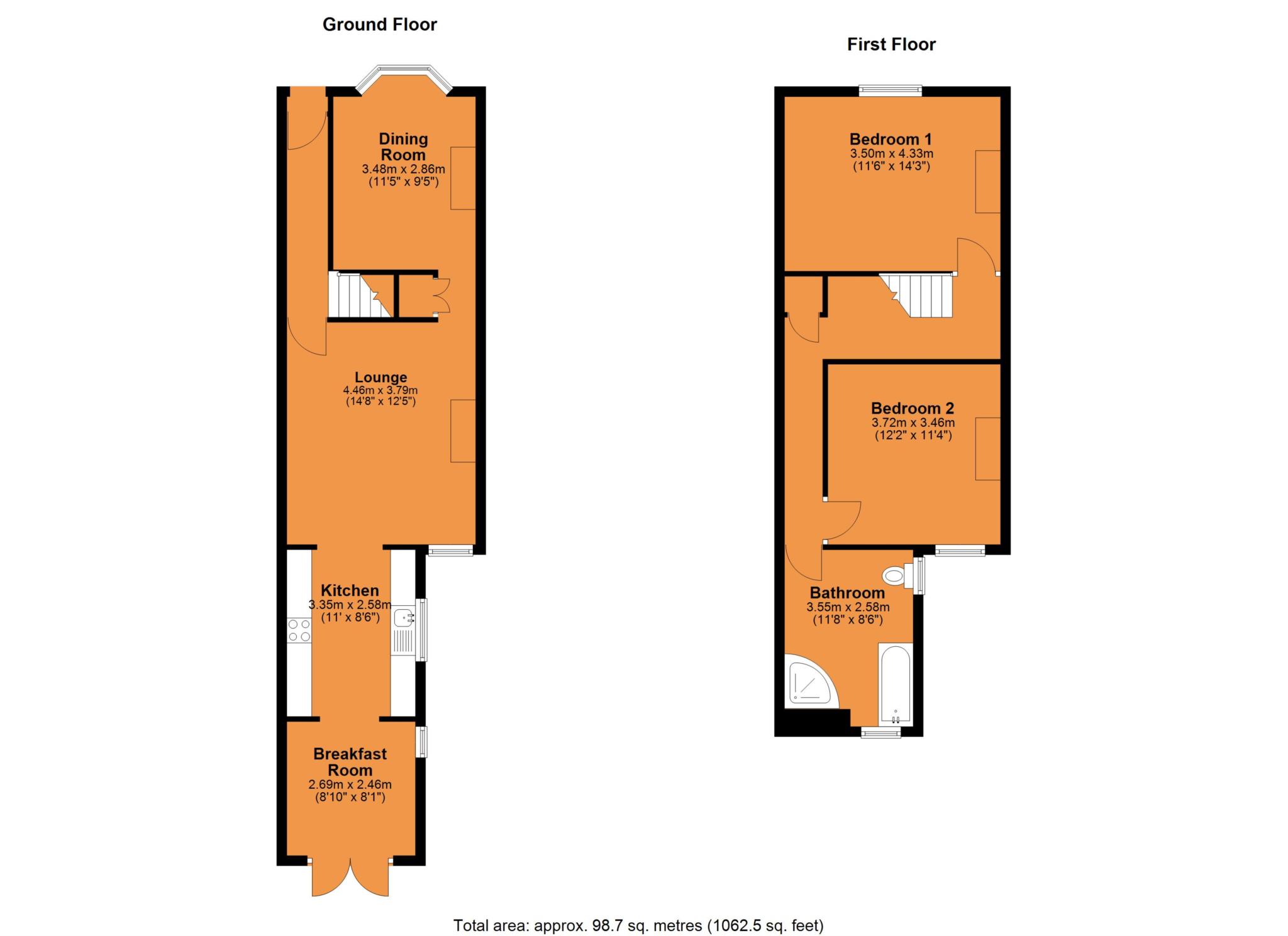 Bedroom Two - 3.72m (12'2") x 3.46m (11'4")