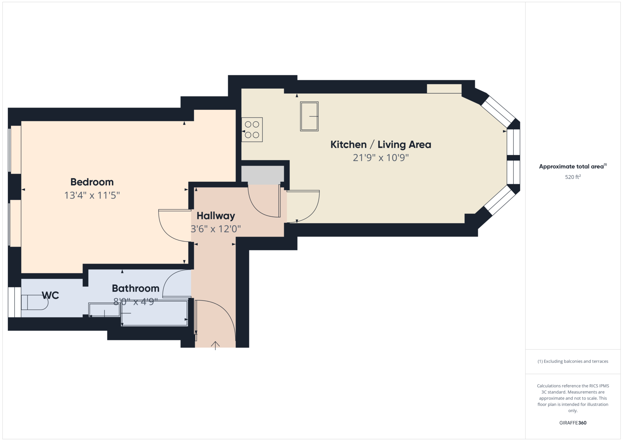 Kitchen / Living Area 21`9` x 10`9` 6.63m x 3.28m Open-plan with bay window