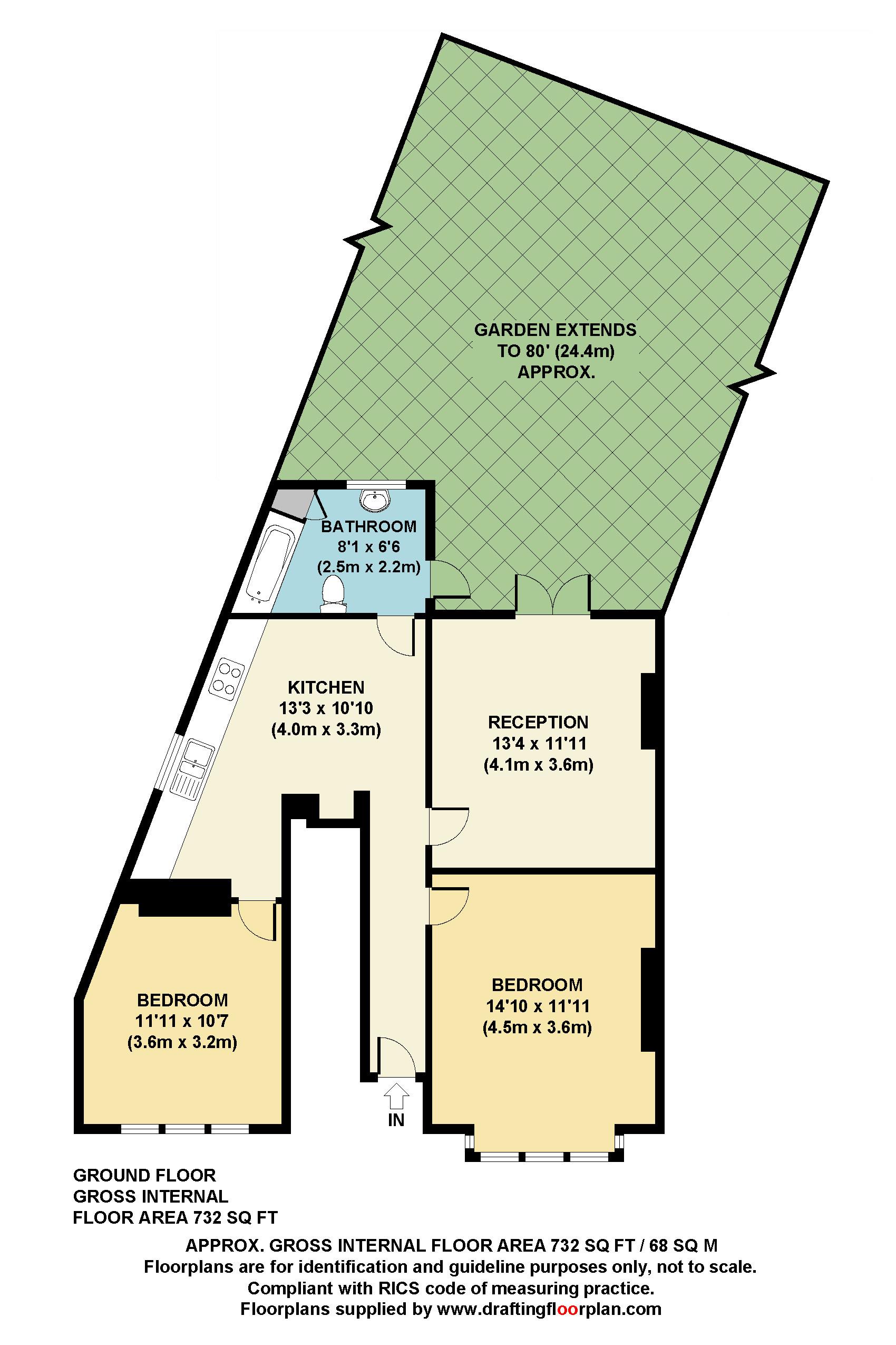 A rare opportunity to acquire a spacious two double bedroom ground floor period flat with high ceilings, original black and white floor tiles in the entrance and hallway. The living room has a lovely feature fireplace and double doors onto a well maintained, approximately 80 ft west facing garden with staggered decking area and lawn and side access. There is a fitted kitchen leading to a family bathroom and a further double bedroom. In addition, the property benefits from off street parking for one car. The location is ideal for both access to New Malden High Street and Station and good routes to Wimbledon and Kingston. EPC D. Council Tax Band C. Share of Freehold