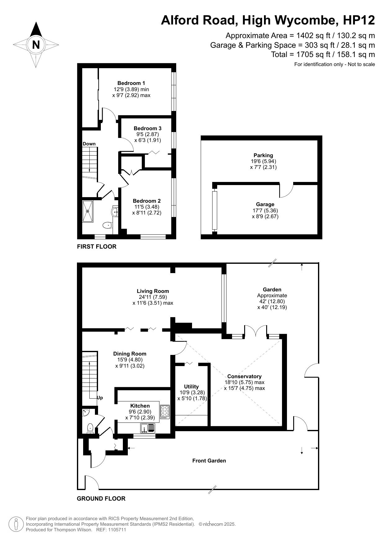 From High Wycombe town centre proceed up the A404 Marlow Hill bearing right at the traffic lights into Marlow Road. Proceed over the first mini-roundabout and then turn right at the second mini-roundabout into Cressex Road. Proceed along Cressex Road and at the first set of traffic lights turn into John Hall Way. Upon reaching a roundabout at the end proceed straight over roundabout into Holmers Way and proceed straight over the next into a continuation of the road. 19 Alford Road will be found on the right hand side fronting Holmers Way with the parking space and garage approached via Alford Way which is on the right hand side,
