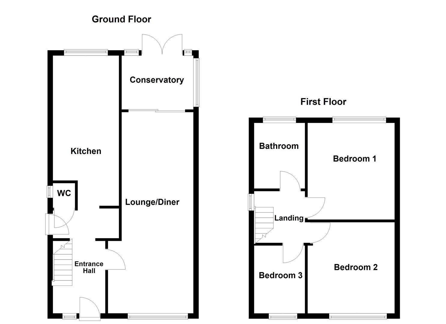 The ground floor comprises of an entrance hall with staircase to the first floor, an open plan lounge/diner with access to the conservatory with glass roof, a modern fitted kitchen with integrated appliances, and a convenient downstairs w.c. To the first floor, the landing provides access to three bedrooms (two doubles and one single) as well as a stylish four piece house bathroom suite. Loft access is also available from this level. Externally, the property features a tarmac driveway leading to a detached garage and an enclosed rear garden with two separate lawned areas, timber fencing, and a north-east facing aspect, ideal for families and outdoor entertaining.