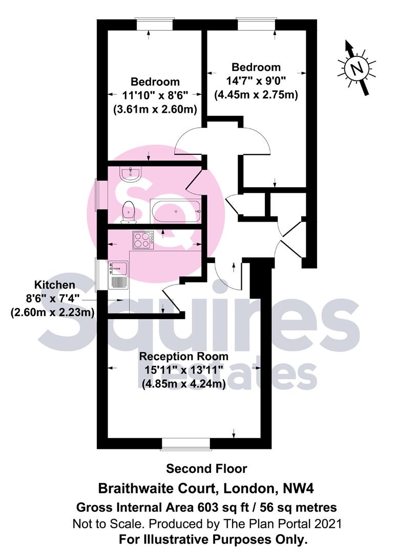 Two double bedroom flat located on the second (top) floor of this purpose built block near Hendon Central. Wooden flooring. Spacious reception room with separate kitchen. Two good sized bedrooms. Modern bathroom. Off street parking. Furnished and available from early August