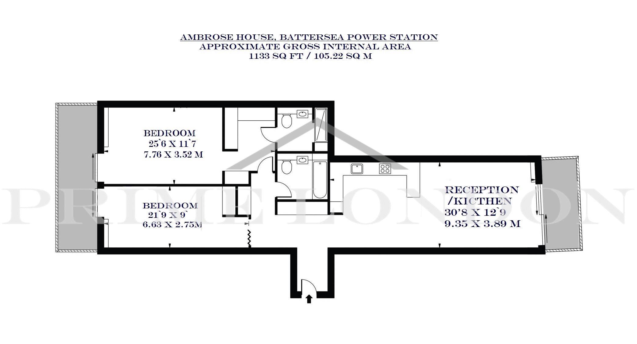A prestigious 1,133 sq ft (105.22 sqm) two-bedroom apartment, with secure parking, set in the exclusive Battersea Power Station development and available for lease exclusively through Prime London.