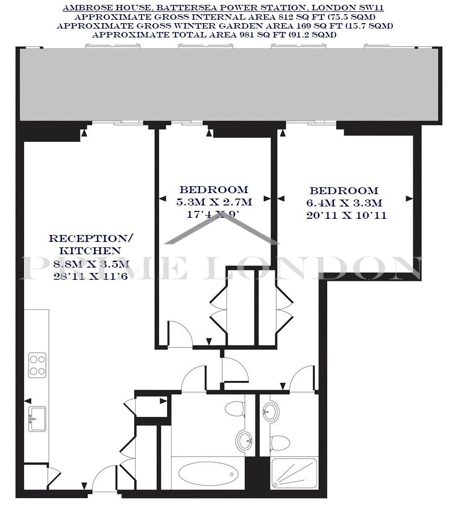 A prestigious river facing two-bedroom apartment totally 981 sq ft (91.2 sqm) set in the exclusive Battersea Power Station development and available for lease through Prime London. The apartment is available on an unfurnished basis.