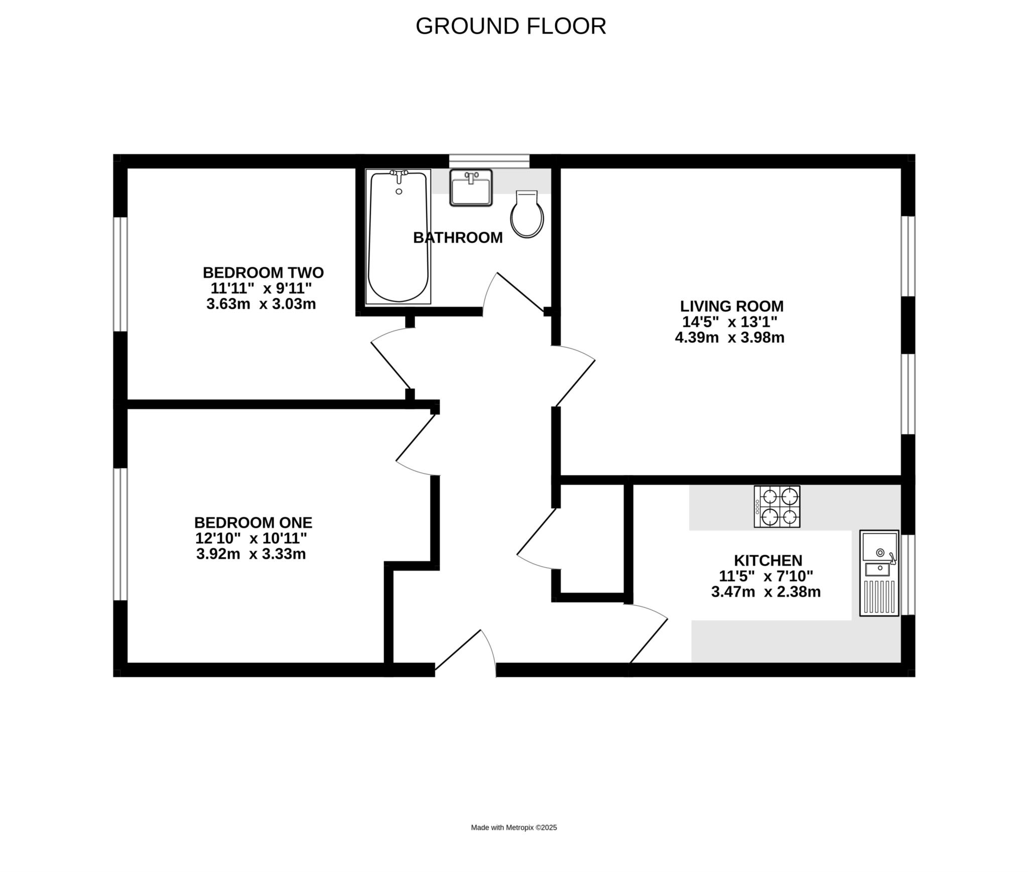 The accommodation of this impressive apartment comprises of a welcoming and spacious entrance hall, separate kitchen with ample work top space and storage. Further into the apartment you will find two spacious double bedrooms, a well presented three piece bathroom and a double aspect living room with enough space for a table and chairs.
