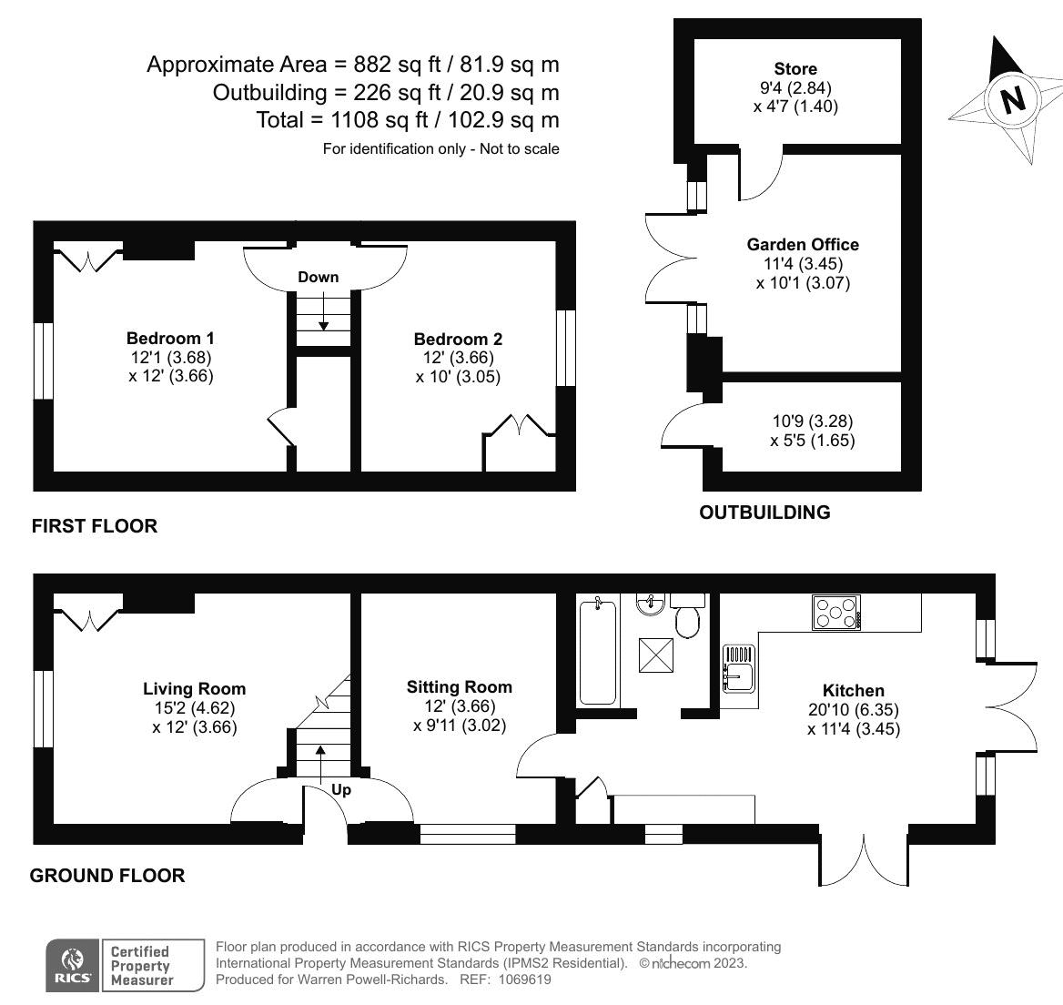 A well presented property set in the heart of this picturesque village. The accommodation features a spacious sitting room with open fireplace and separate dining room. The kitchen family room to the rear has twin double doors to the garden and fitted with an attractive range of cottage-style worktops, cupboards and storage spaces. Upstairs there are two double bedrooms. At the rear of the garden, there is an impressive detached outbuilding which accommodates a home office, sound proofed room and separate store.To the front and side, there is off-road parking. The rear garden features a large paved terrace with retaining wall and steps leading up to an area of lawn with screening shrubs and borders . Timber shed and greenhouse. Right of access.