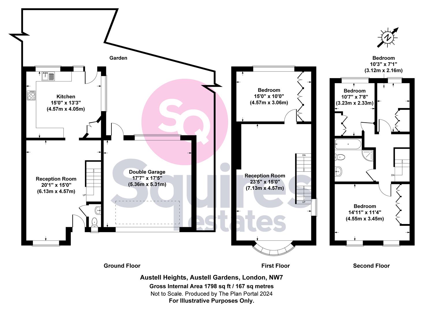 A well-presented 4 bedroom 2 reception end of terrace townhouse with double garage. The ground floor comprises a guest toilet and reception room with parquet flooring leading to a new modern eat-in kitchen with access to a private garden. On the first floor, you have a large reception room and one of the double bedrooms with fitted wardrobes. On the 2nd floor, you have a lovely 4 piece bathroom suite and a further 3 bedrooms all with fitted wardrobes. Other benefits include double glazing throughout, new carpets, central heating, a combination boiler and off-street parking for 2 cars.