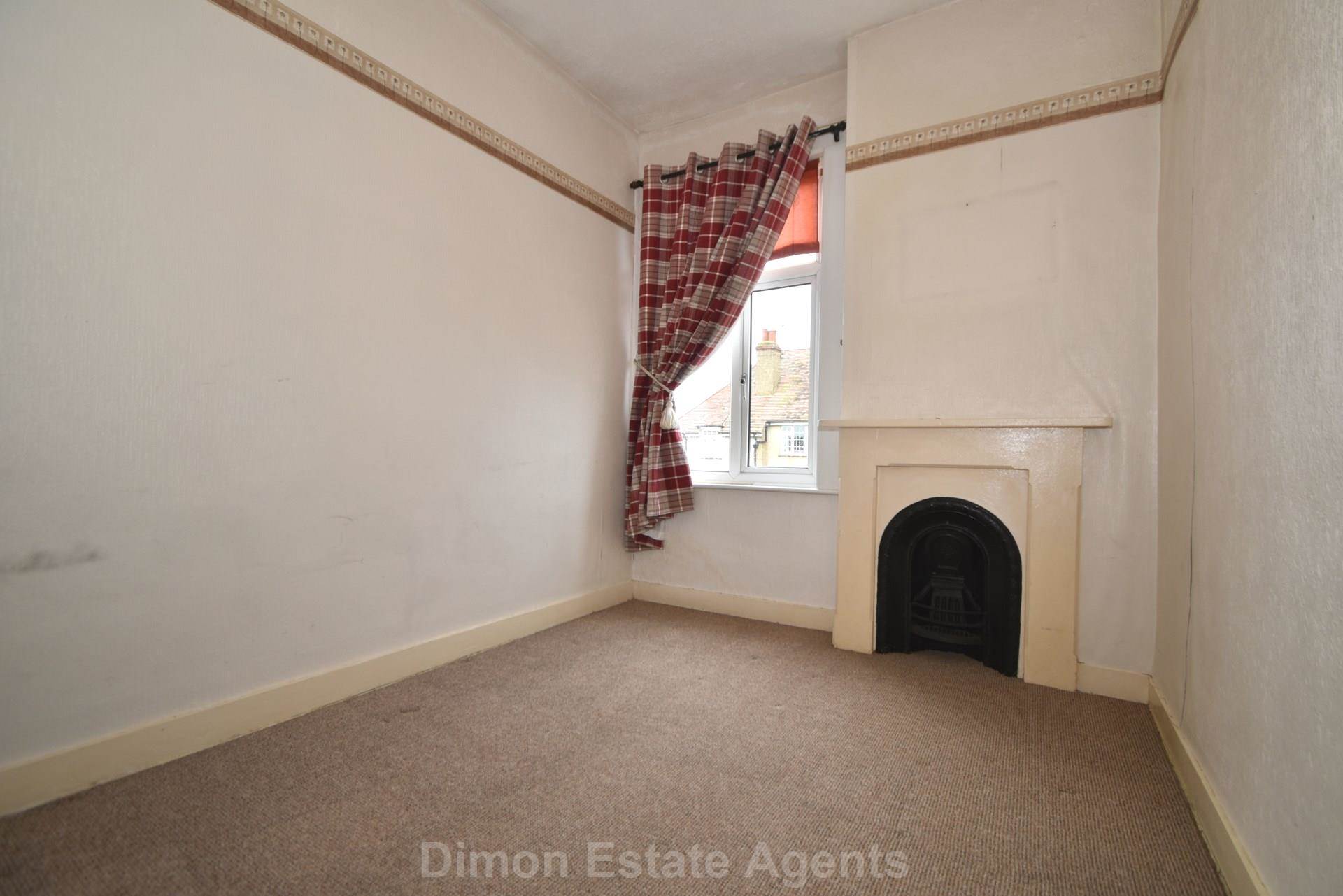 PVCu double glazed window, double radiator, cast iron fireplace with tiled inset, built in cupboard, picture rail.