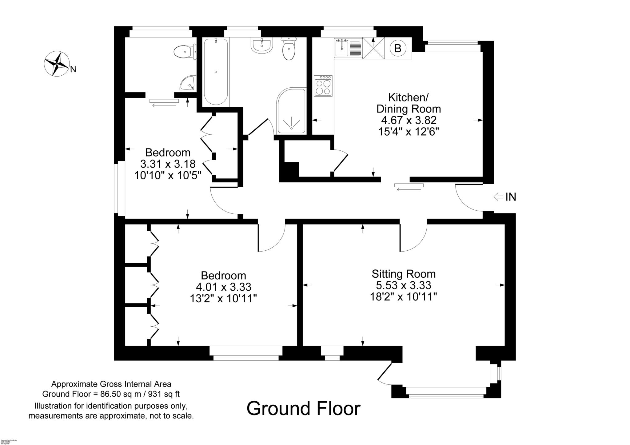 Sitting Room (5.53m x 3.33m) (18`2 x 10`11), carpeted. Window and door to the communal gardens.