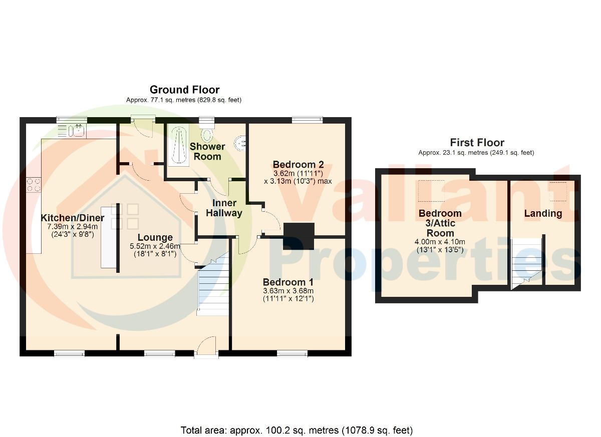 Stairs leading from the lounge lead to the versatile third bedroom/attic room which does have restricted head height due to the sloping ceilings.