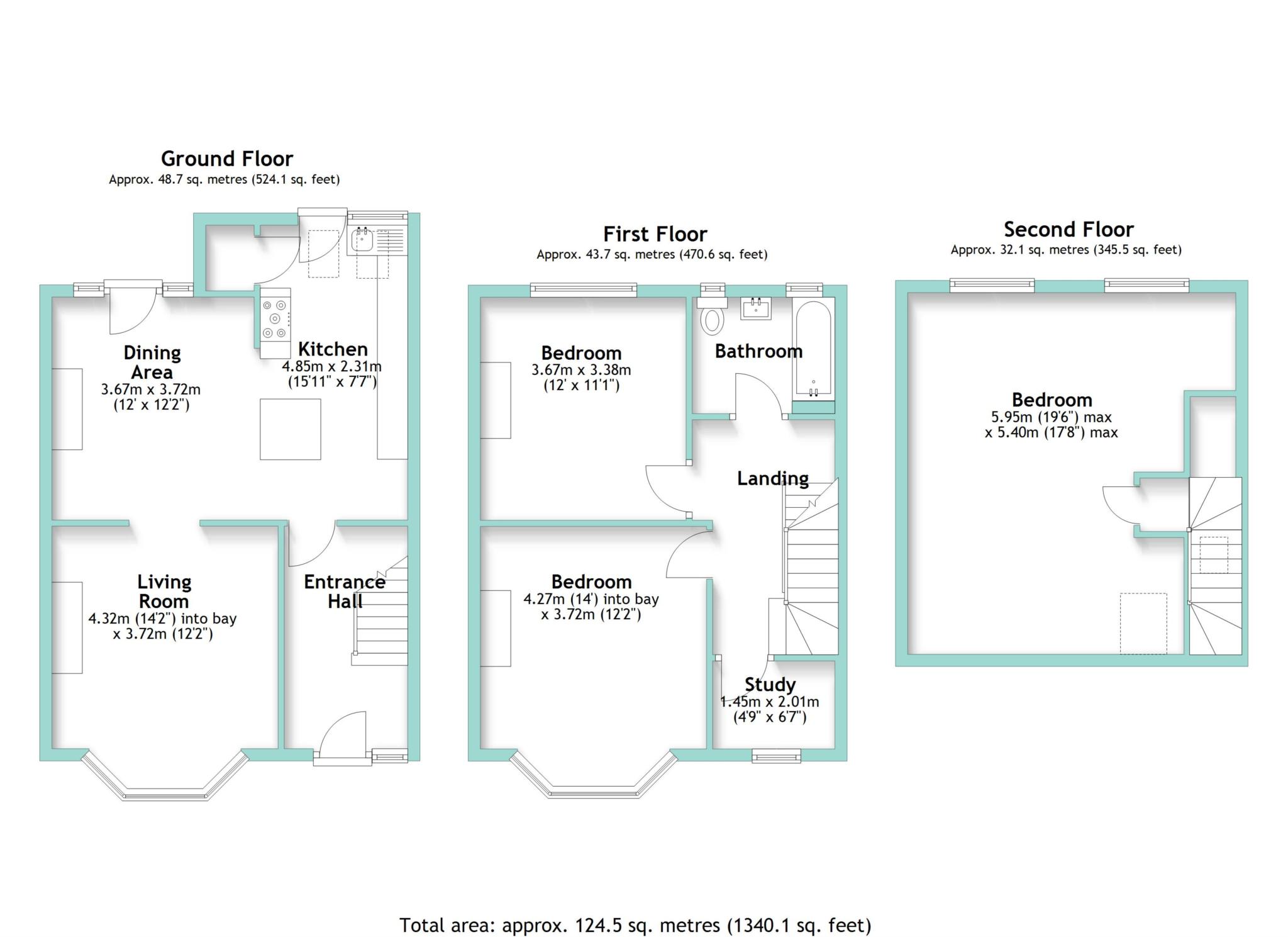 The accomplished use of heritage colours and timber tones continues upstairs where three double bedrooms pepper the first and second floors. The considerable first bedroom stretches exclusively out over the top floor generating a fantastic escape from the hubbub of a busy day, while on the first floor a sublime second bedroom provides a worthy alternative for the status of main bedroom with its sweeping curve of bay windows and seductive pink walls. A third double bedroom sits peacefully to the rear with garden views and anyone working from home will appreciate the added bonus of a dedicated study with a feature oriel window. Together these outstanding rooms share a first class family bathroom where a full size bath has an overhead rainfall shower and crisp white tiles are punctuated by monochrome mosaics.