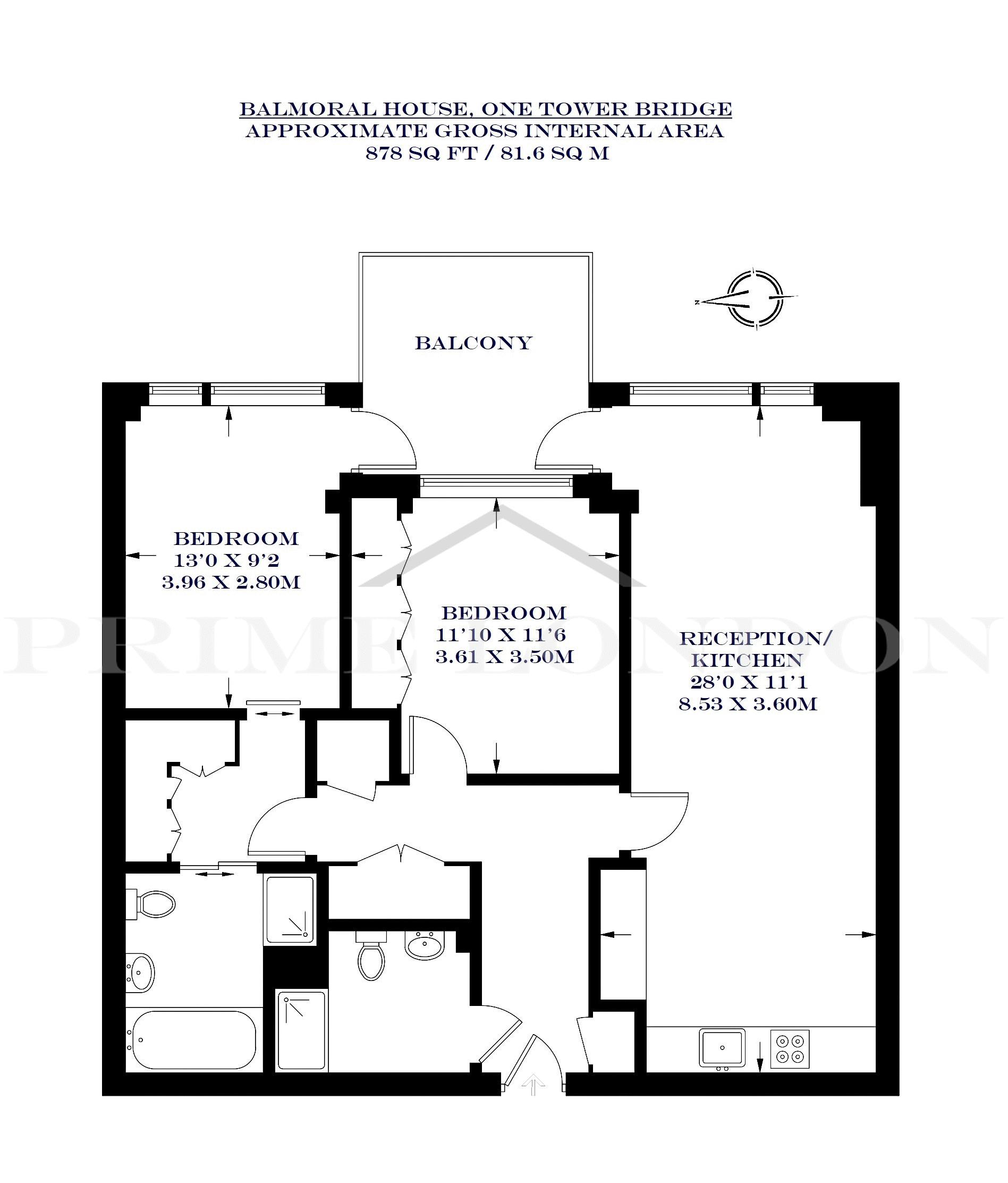 This modern two bedroom two bathroom apartment of 878 sq ft / 81.6 sq m, set in a quiet position within the highly sought after One Tower Bridge development, is available for chain free sale through Prime London.