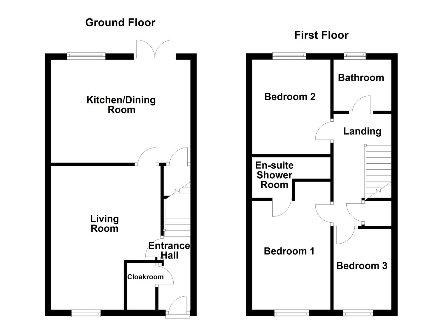 The accommodation comprises of entrance hall, cloakroom, lounge, open plan kitchen dining room with patio doors to the rear garden. The first floor landing provides access to three bedrooms (the main with en suite shower room) in addition to the house bathroom. Outside to the front, a tarmacadam driveway provides off street parking for two vehicles with an electric car charging port, whilst to the rear an enclosed lawned garden.