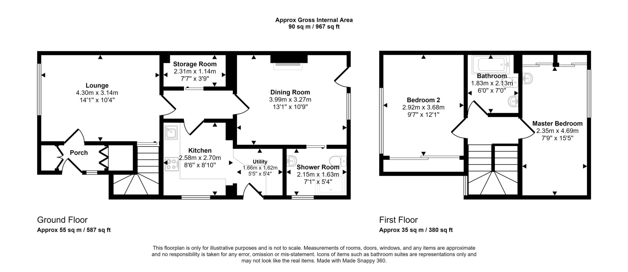The fitted kitchen completes the main floor and offers a selection of wall and base units with appliances and enjoys extra space with the extension. A side door allows access out to the gardens . The upper floor provides two generous double bedrooms with open outlook and the rear bedroom is complete with a vanity wash hand basin. The family bathroom completes the upper floor. Double glazing, gas central heating, extensive storage and driveway. gardens are located to the front and rear with the front gardens offering a rich variety of mature plants and shrubs. The rear walled gardens provide a peaceful setting with patio space, a central island with mature fruit trees and plants and a double glazed outhouse ideal for a number of uses.