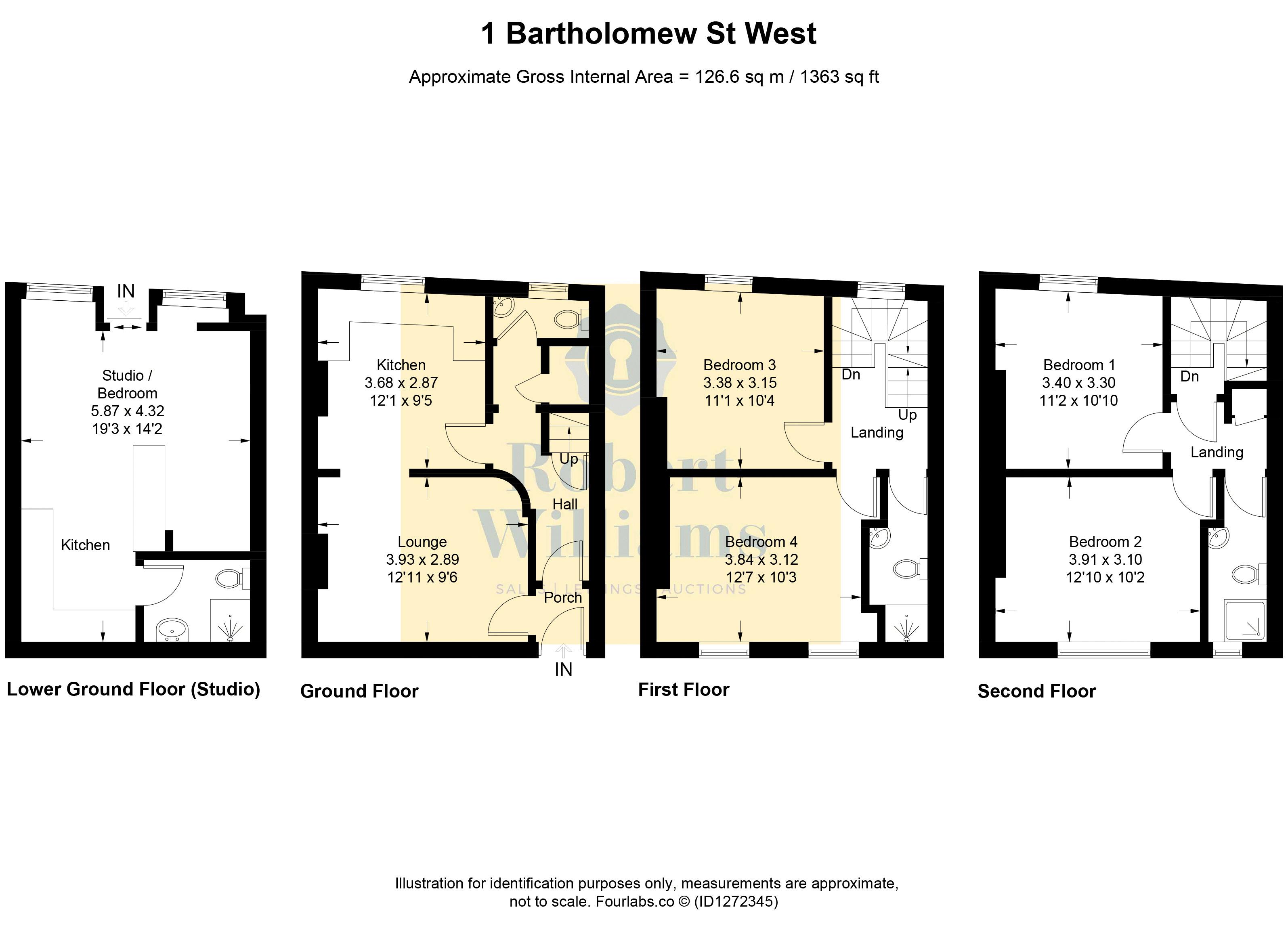Accessed from the rear of the building, via Rackclose Lane (a pedestrian lane), is the self-contained studio flat, which consists of modern kitchen, bathroom and bedroom/living area.