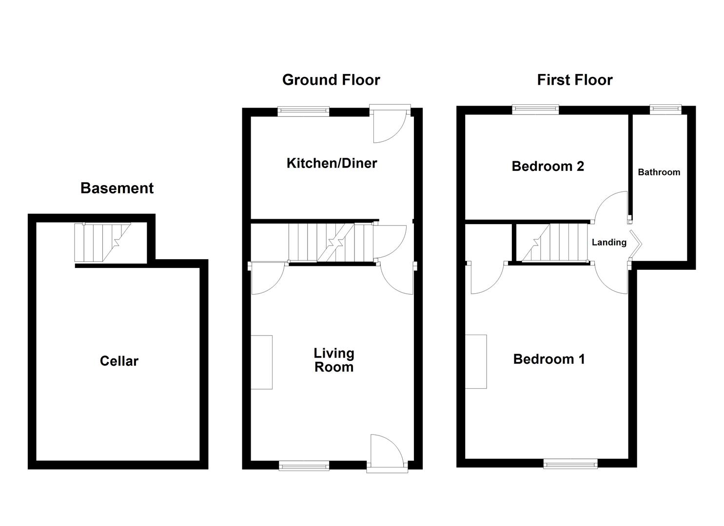 The accommodation briefly comprises of the living room with stairs to the first floor landing and the kitchen/diner which provides access down to the cellar and to the rear garden to complete the accommodation on the ground floor. Upstairs, to the first floor landing there is access to two bedrooms and the house bathroom. Bedroom one benefitting from fitted wardrobes. Outside, there is a low maintenance paved buffer garden to front, enclosed by hedge, wall, and timber fencing with gated access to front door. To the rear of the property is a low maintenance paved courtyard, ideal for outdoor dining and entertaining purposes, enclosed by wall and timber fencing with gated access to ginnel, providing a flying freehold for the bathroom.