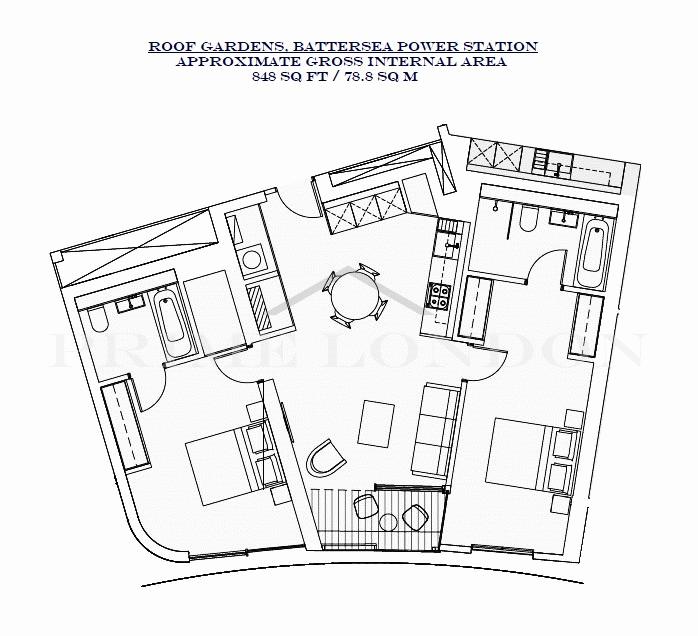 This exceptional and brand new 848 sq ft / 78.8 sq m two bedroom two bathroom apartment, set in a bright position within the Battersea Roof Gardens phase of the highly desirable Battersea Power Station development (next to the River Thames, Battersea Park and the upcoming Battersea Power Station Northern Line station), is available for sale through Prime London.