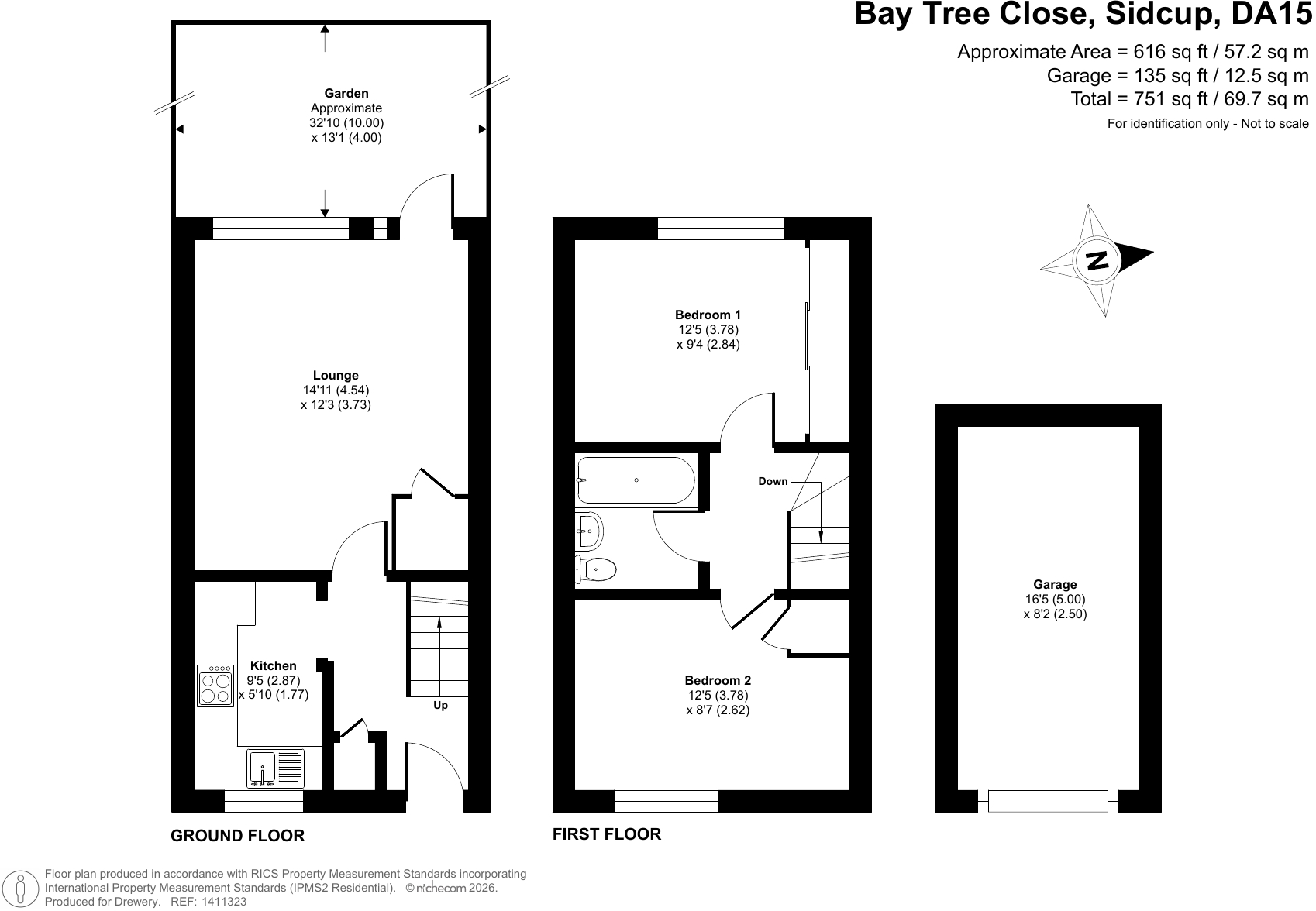 Externally, the property benefits from a private rear garden, on-street parking, and a garage en bloc.