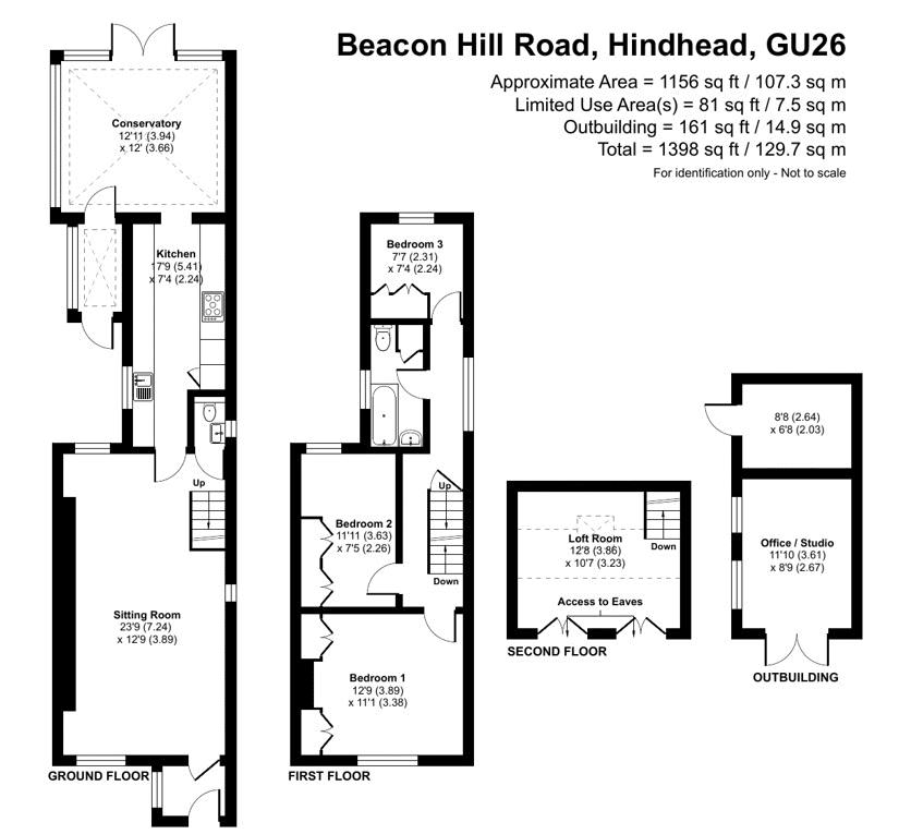 Tucked away in a quiet position with pedestrian access to the front and vehicular access to the rear, is this charming 3 bedroom cottage. The house has been modernised in recent years, whilst still retaining much of its character and charm. The sitting room offers a duel aspect and woodburner, the kitchen has been updated with shaker style units, quartz worktops and built in appliances. Furthermore is a conservatory overlooking the rear garden and adjacent store room. Upstairs are three bedrooms and family bathroom, whilst the top floor has been converted to a bonus loft room, ideal for occasional use. The large garden enjoys a large raised decked area leading with steps down to the lawn with well stocked flower and shrub borders. At the end of the garden is the studio/office with light and power, double doors to the garden and is just perfect space to work from home. Off road parking is accessed at the rear with a gate leading to the garden.