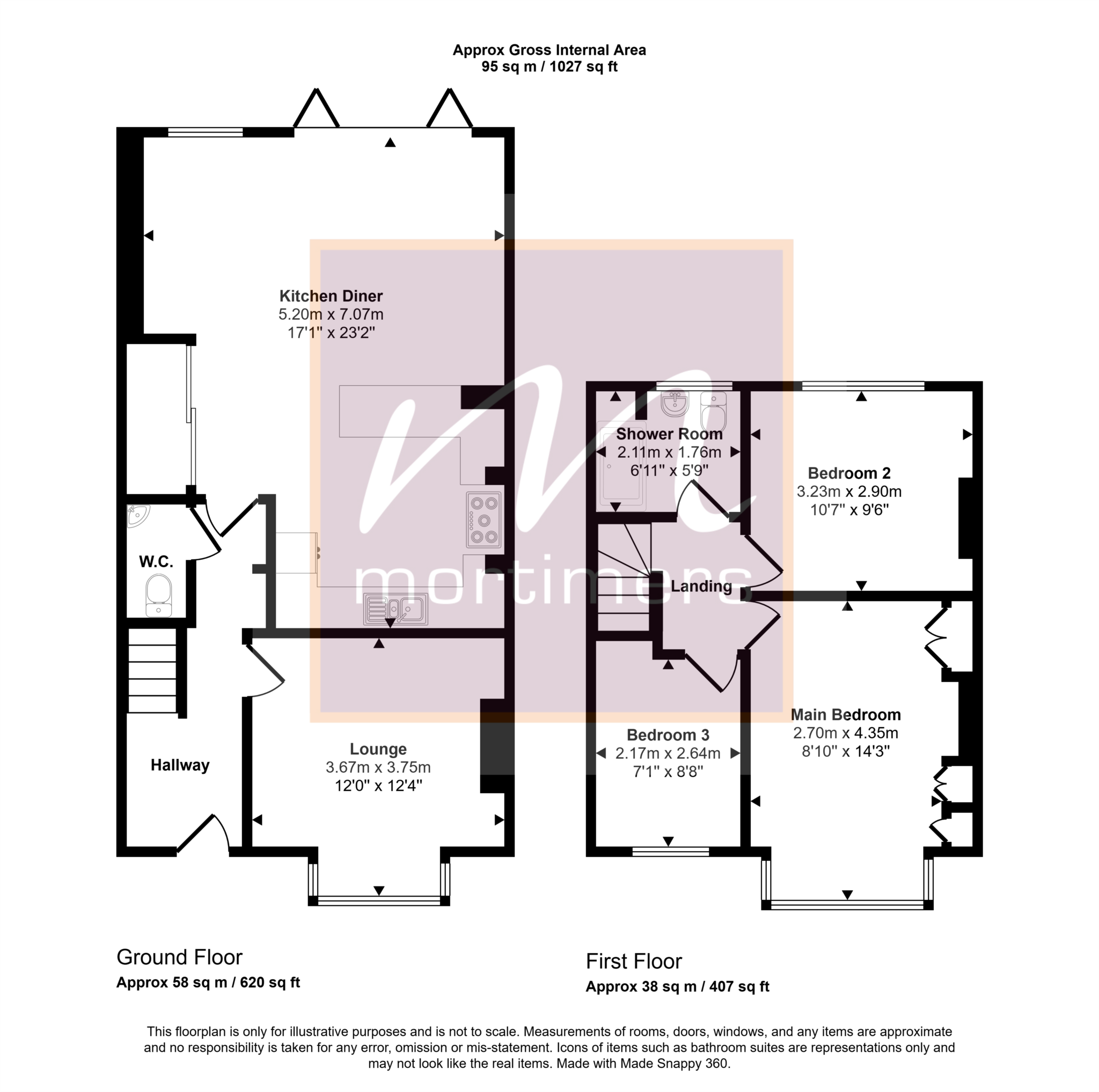 Upstairs, you`ll find two generous double bedrooms, with the main bedroom benefiting from custom-made built-in wardrobe space, plus a well-proportioned single bedroom ideal as a child`s room or home office. The modern family bathroom features a stylish walk-in shower.