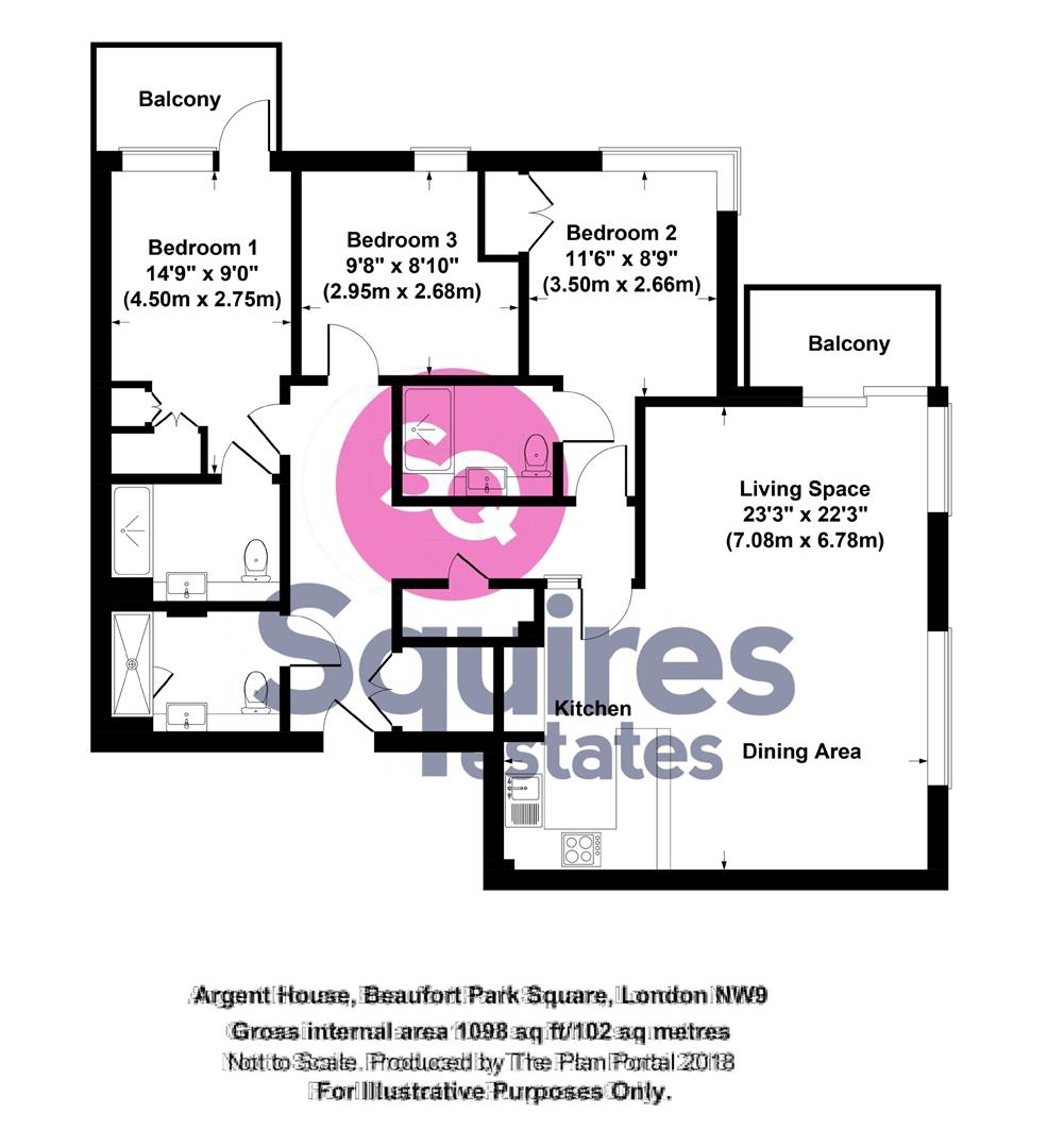 A luxury and 'Premier' 3 bedroom, 3 bathroom (in excess of 1000 sq ft) apartment located on the 11th floor of a modern development within Beaufort Park. This stunning flat will boast fantastic views and has the added benefit of facing internally into one of Beaufort Park's enclosed communal gardens and an underground parking space. As a Premier flat it comes with a custom designed fitted kitchen, all bathrooms come with Villeroy and Bosch chinaware and this apartment comes with 2 balconies. The accommodation is spacious with a 23'3 x 22'3 reception room with recessed kitchen, a master suite, 2 further double bedrooms (1 with en-suite) and a family bathroom. Beaufort Park is a growing community with a spa which is currently undergoing expansion, a 24 hour concierge and many shops. Available immediately.