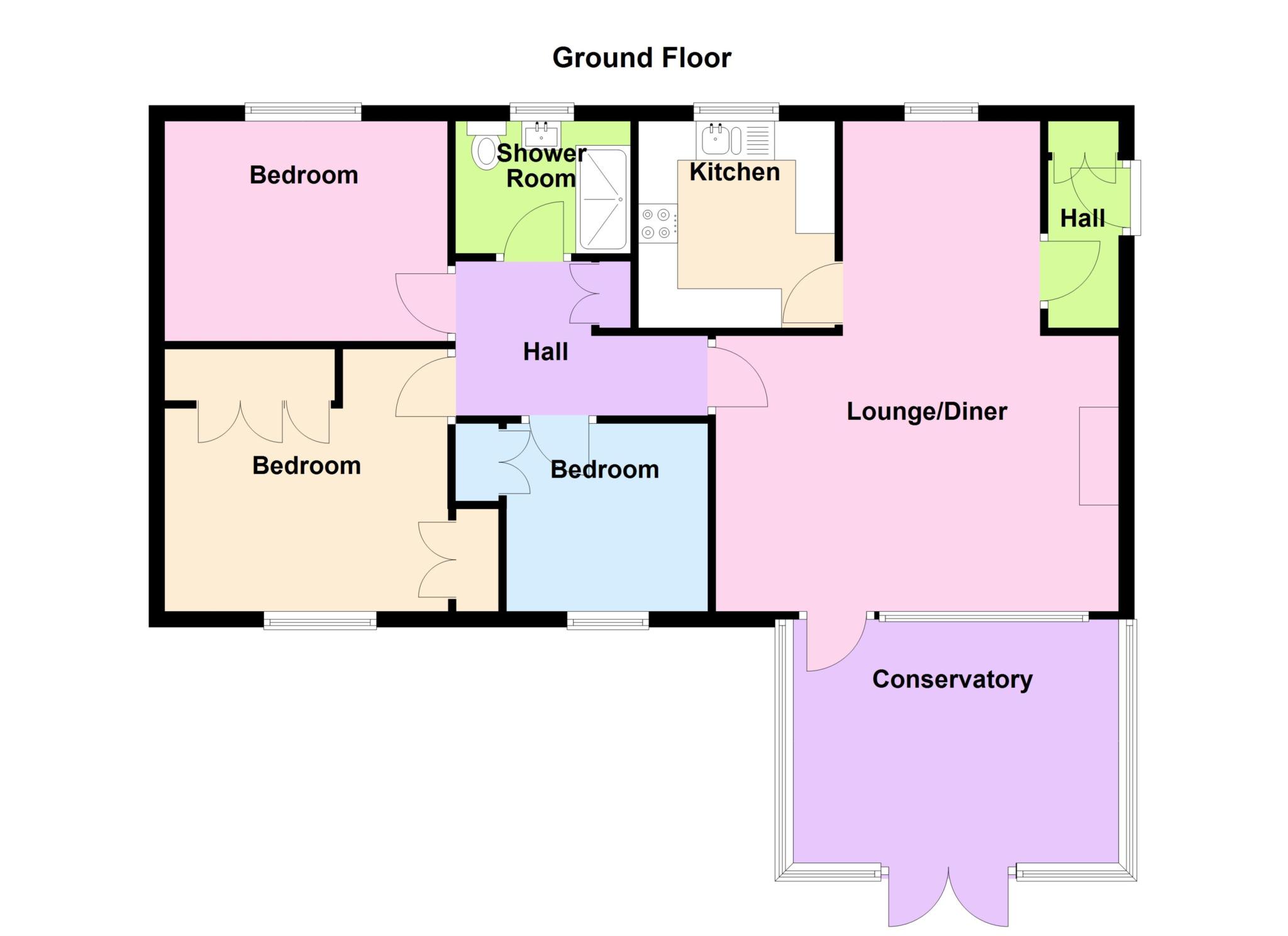 PVCu double glazed windows and French doors to garden, double radiator, polycarbonate roof, ceramic tiled floor.