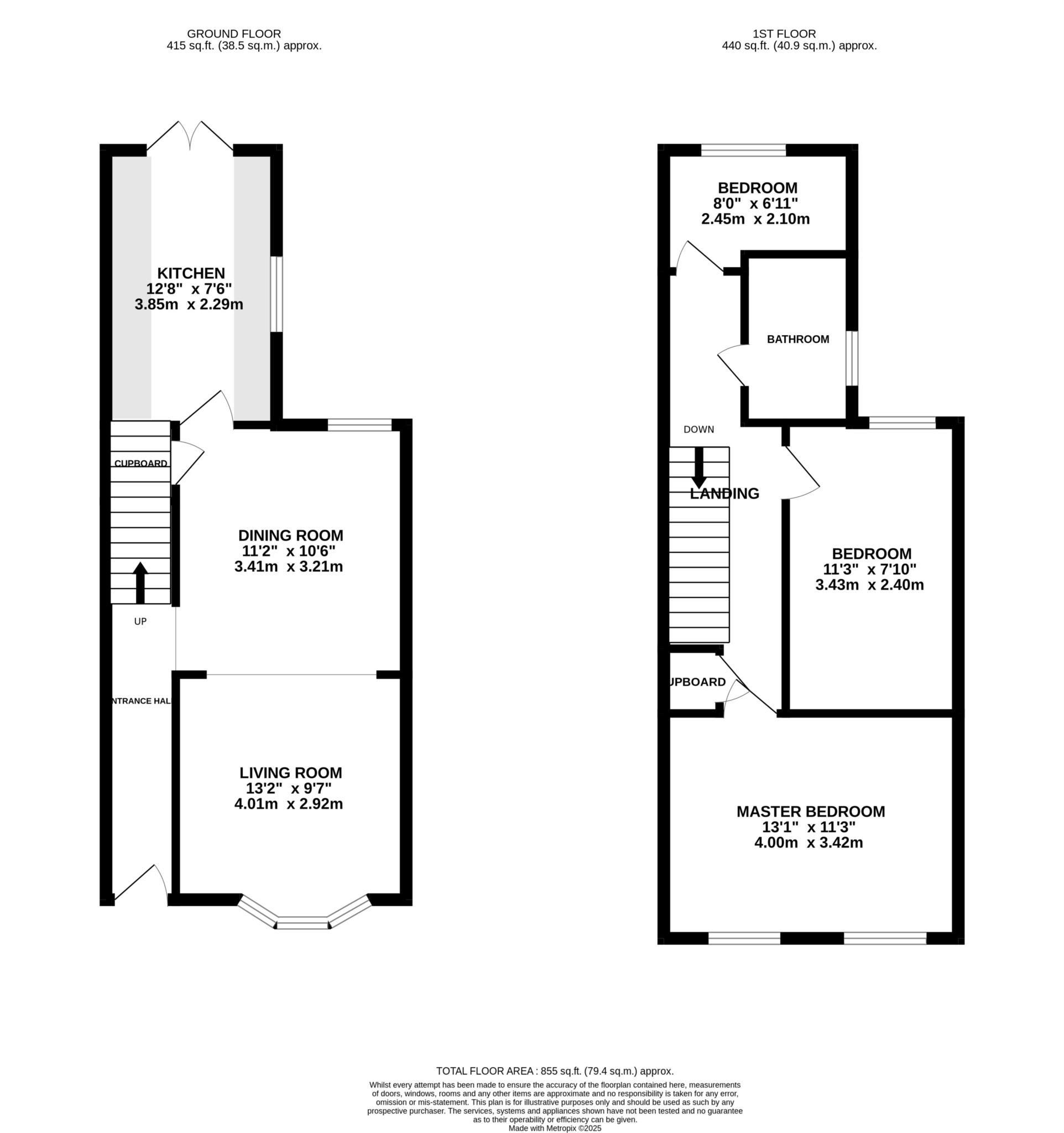 Living room: 13`2" x 9`7" into double glazed bay window.