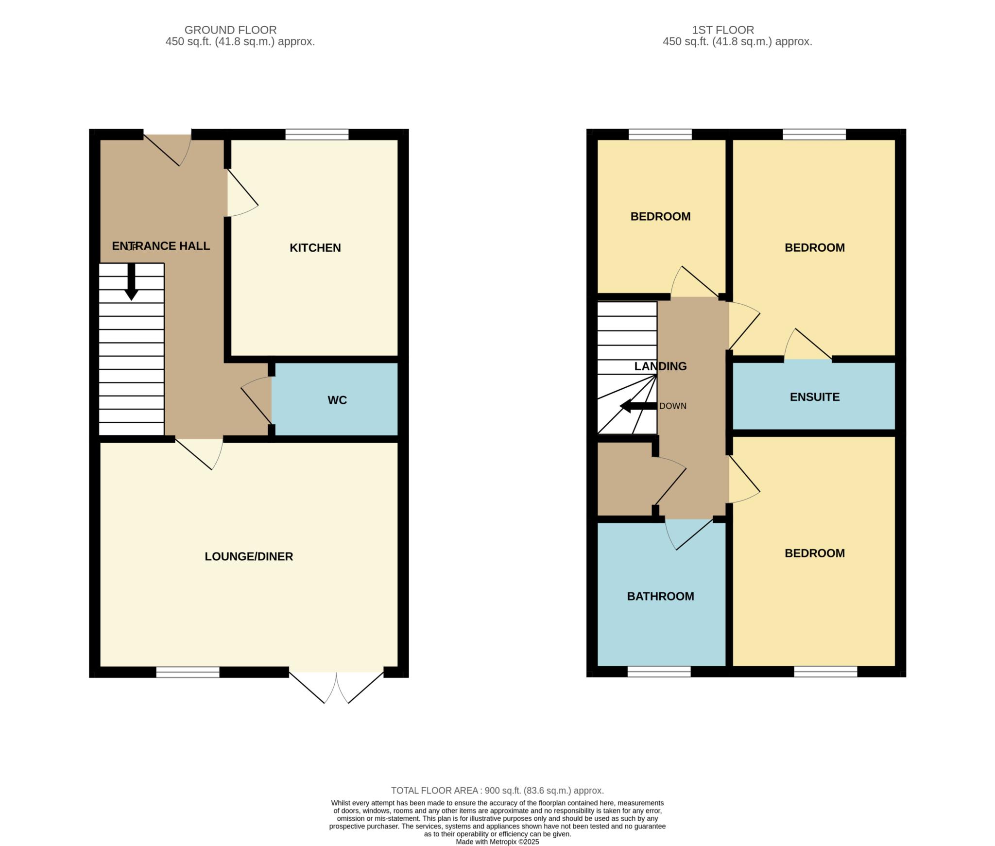 On the ground floor, a welcoming entrance hall leads to a bright and spacious lounge, ideal for relaxing or entertaining. From here, patio doors open directly onto the easily maintained rear garden, offering a private space to enjoy all year round. A separate kitchen/diner provides ample room for family meals and is finished with sleek, modern units. A ground-floor WC adds further convenience.