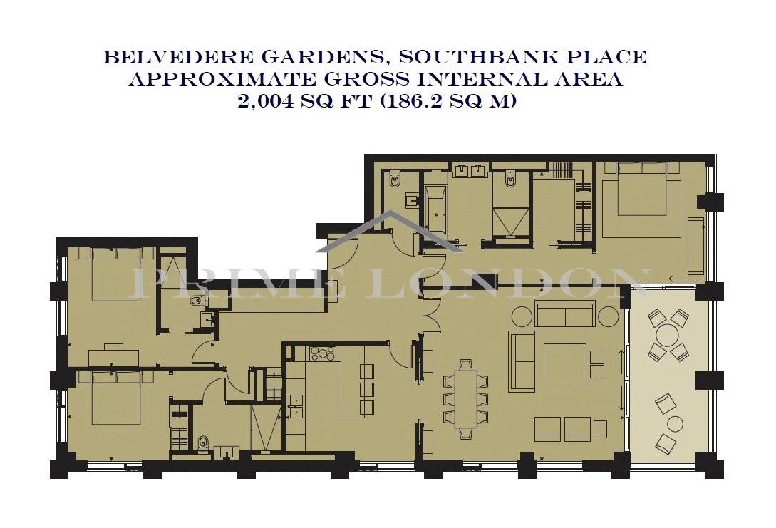 This elite triple aspect three bedroom sub-penthouse apartment, available to rent though Prime London, is positioned in a stunning vantage point of Belvedere Gardens, Southbank Place.