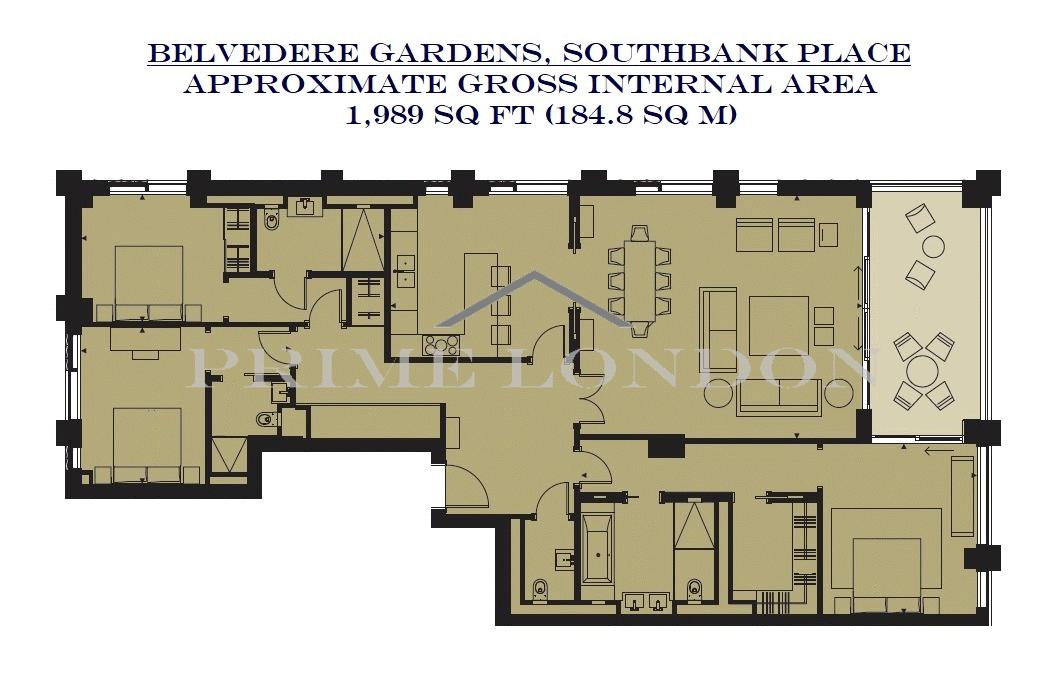 This elite triple aspect three bedroom Sub-Penthouse apartment, available for lease though Prime London, is positioned in a stunning vantage point of Belvedere Gardens, Southbank Place.