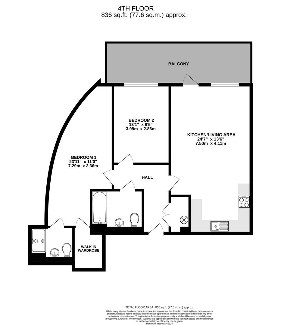 Description - The apartment offers well-proportioned accommodation throughout, including an open-plan kitchen and living area with integrated appliances, two double bedrooms, and two bathrooms, one of which is an en-suite to the principal bedroom. The main bedroom also benefits from a walk-in wardrobe, and the property has been recently redecorated, providing a clean and well-maintained finish.